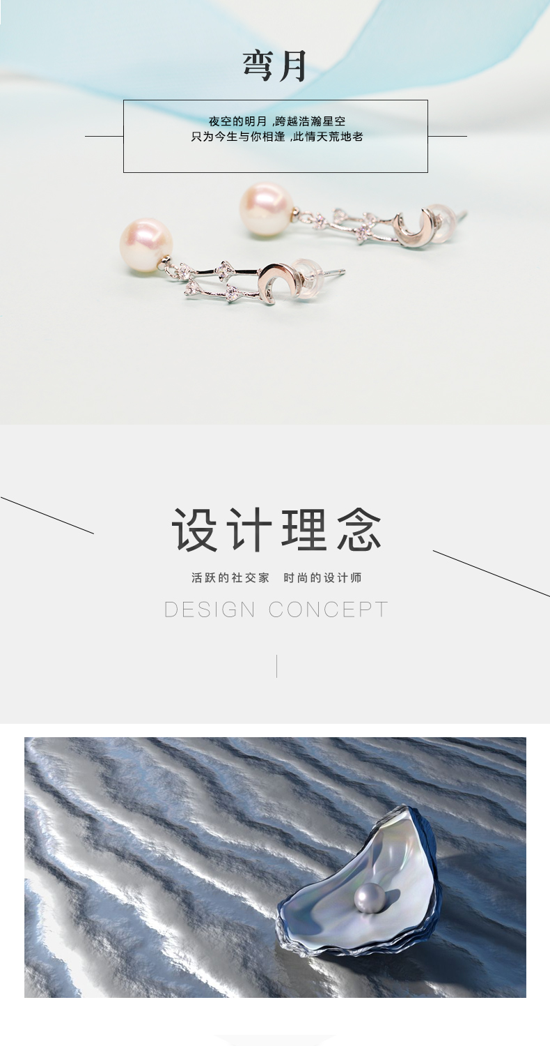 美裕 弯月 银925淡水珍珠耳钉 8-9mm白 104968