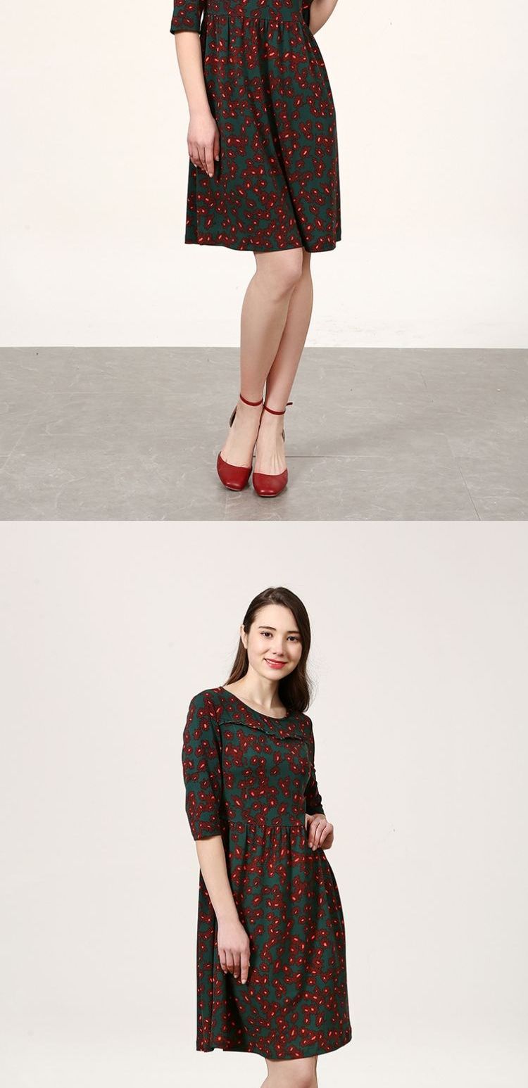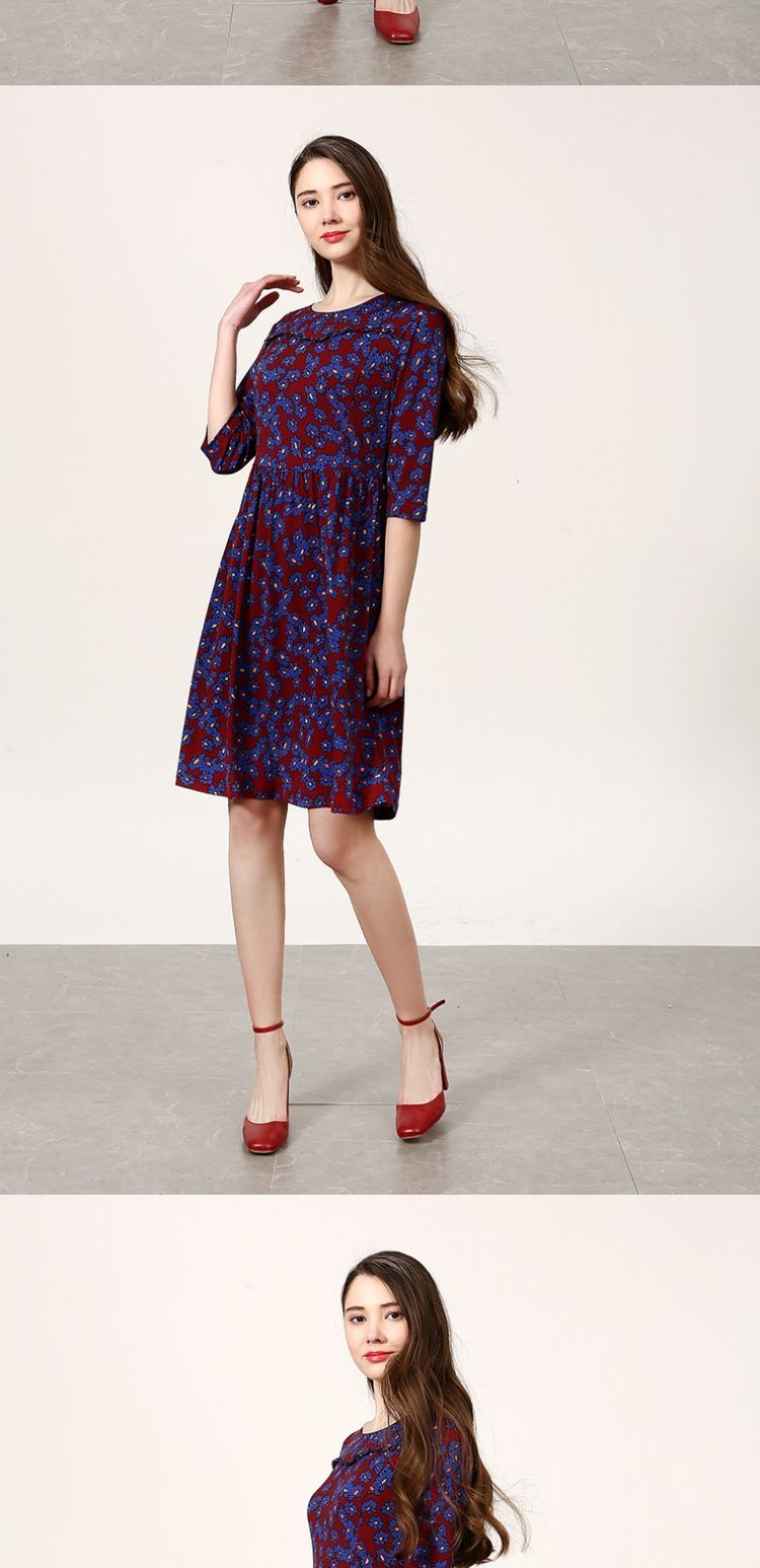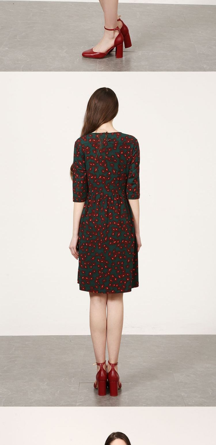 佐尔美新品春秋季新品女士修身显瘦碎花中长款连衣裙E73LL41