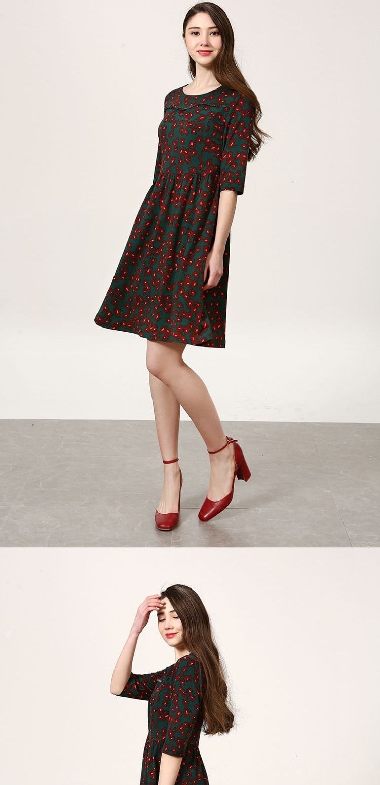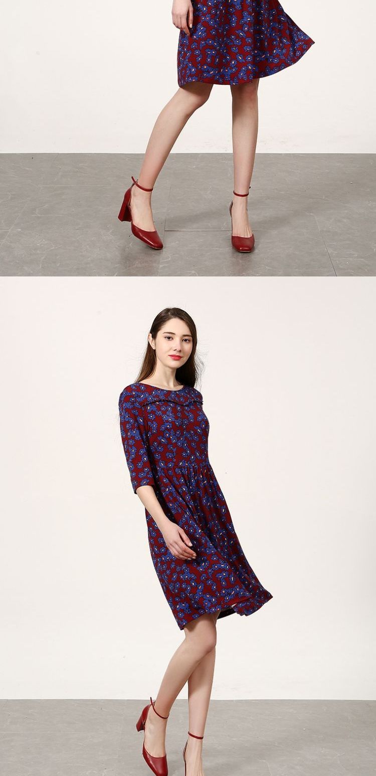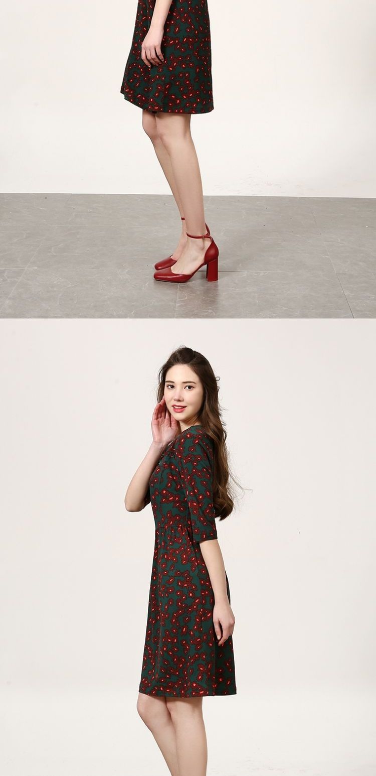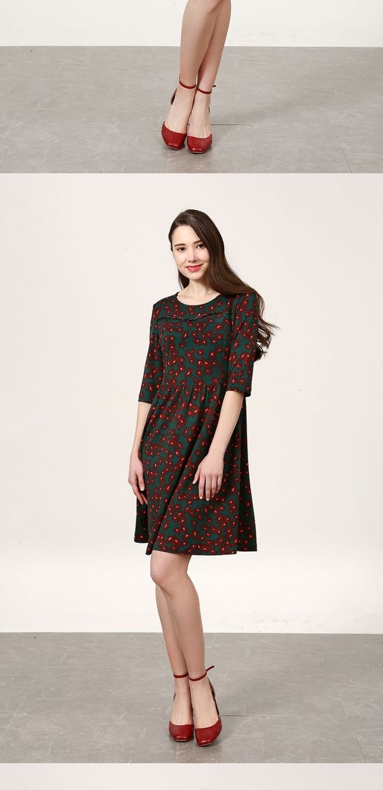 佐尔美新品春秋季新品女士修身显瘦碎花中长款连衣裙E73LL41