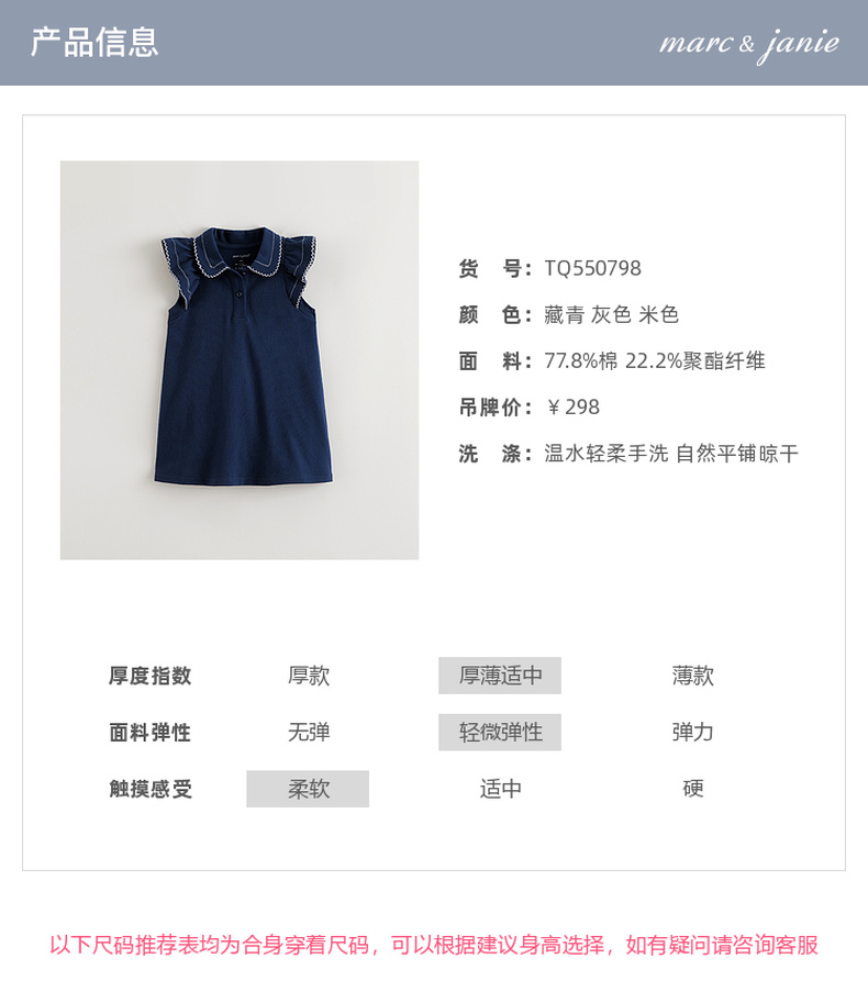 【凉感透气】马克珍妮女童小飞袖运动连衣裙 宝宝夏装新款550798