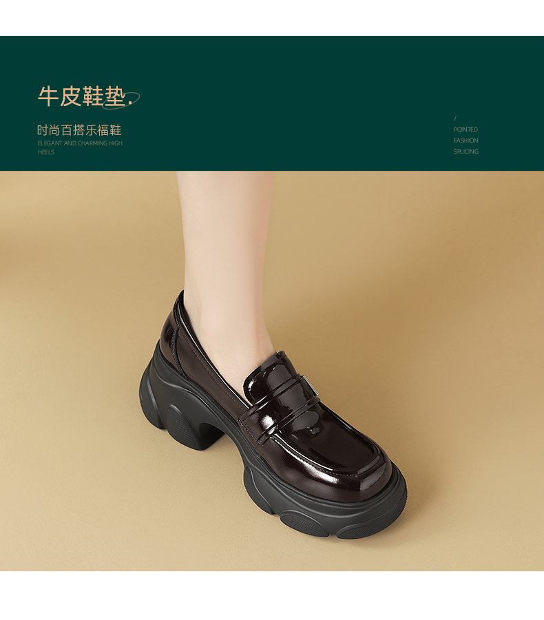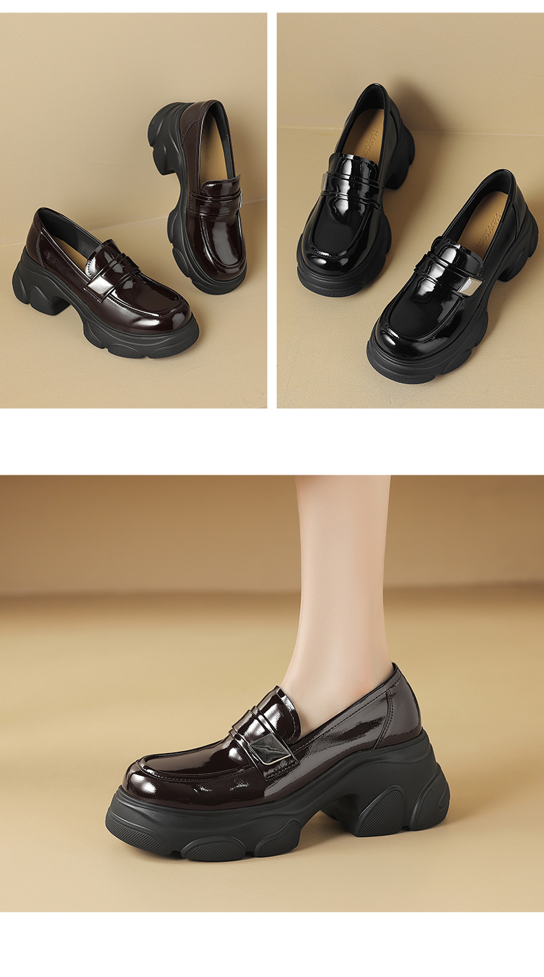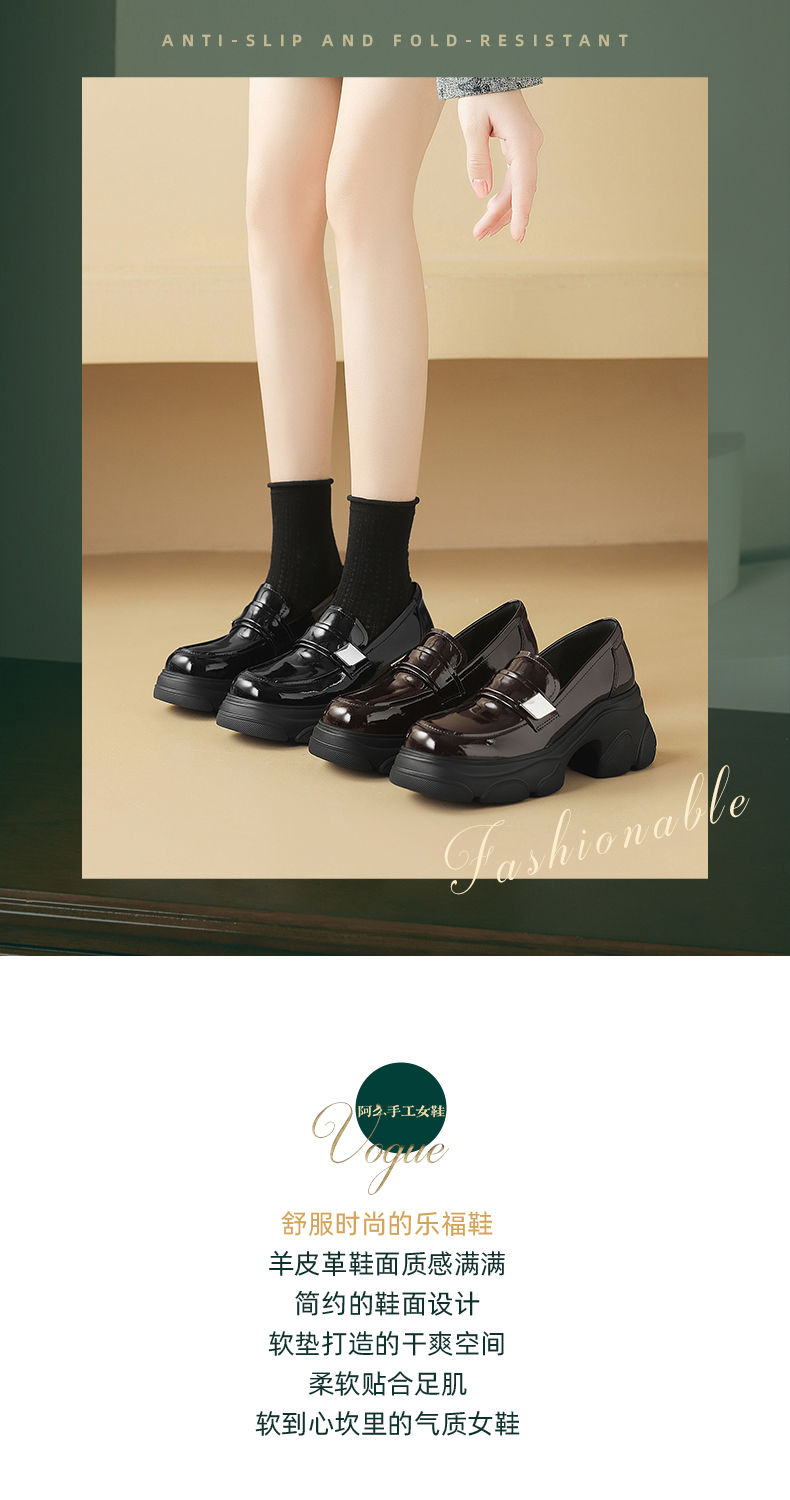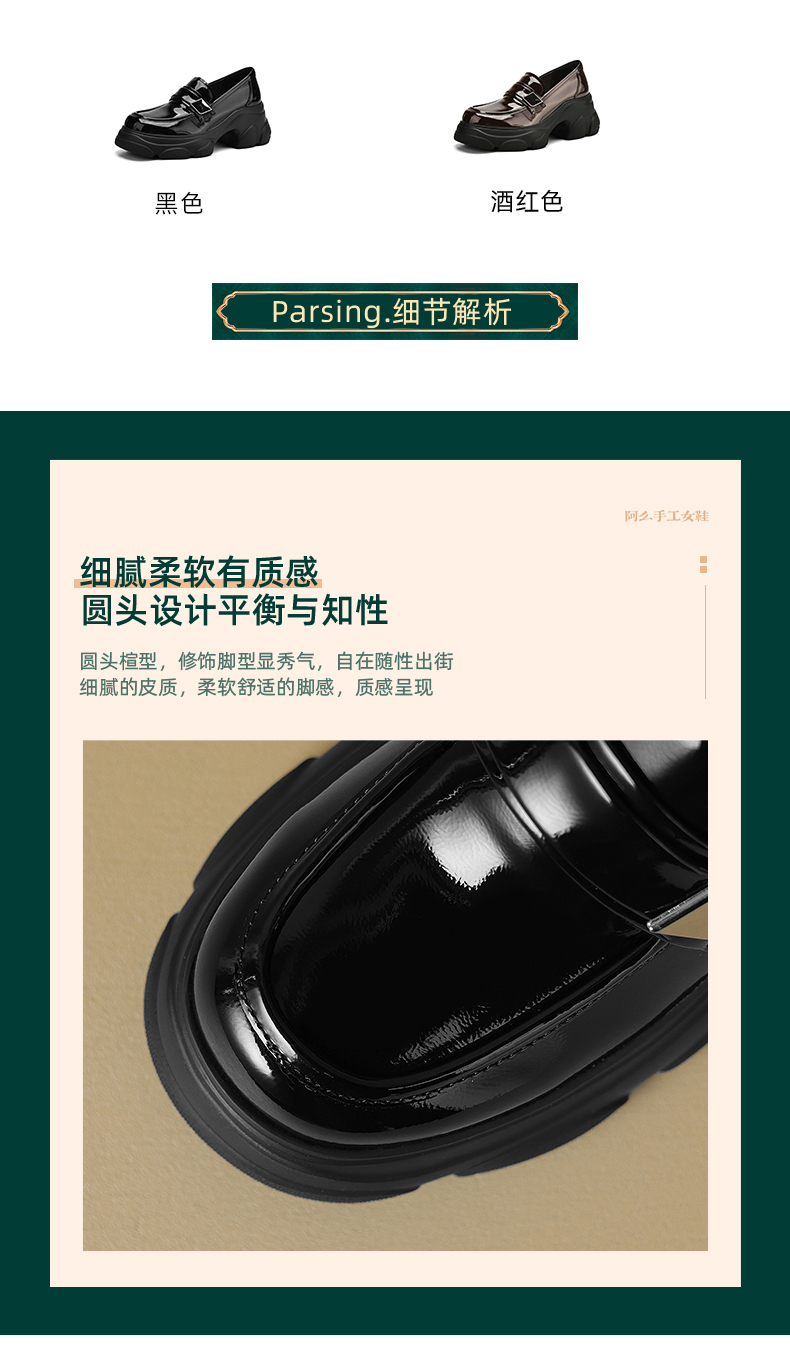 阿么手工女鞋真皮乐福鞋厚底轻便7CM百搭亮面2025新款圆头小皮鞋