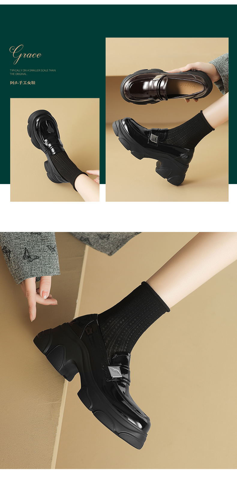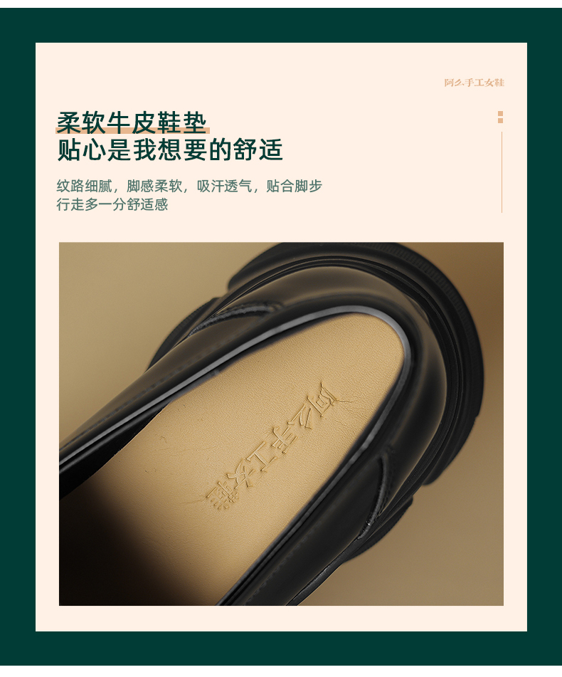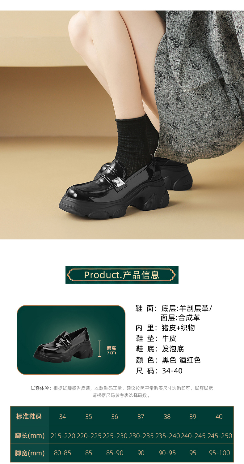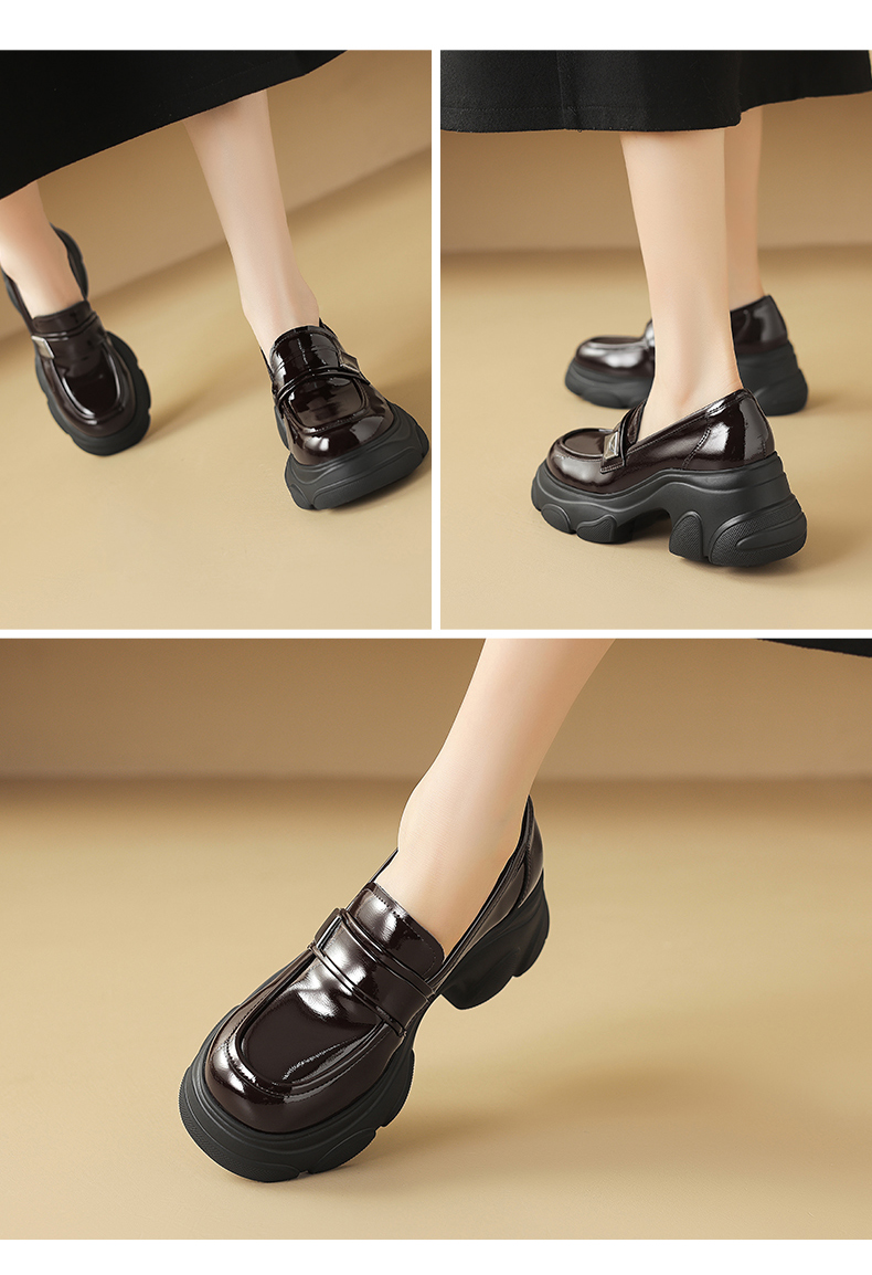 阿么手工女鞋真皮乐福鞋厚底轻便7CM百搭亮面2025新款圆头小皮鞋