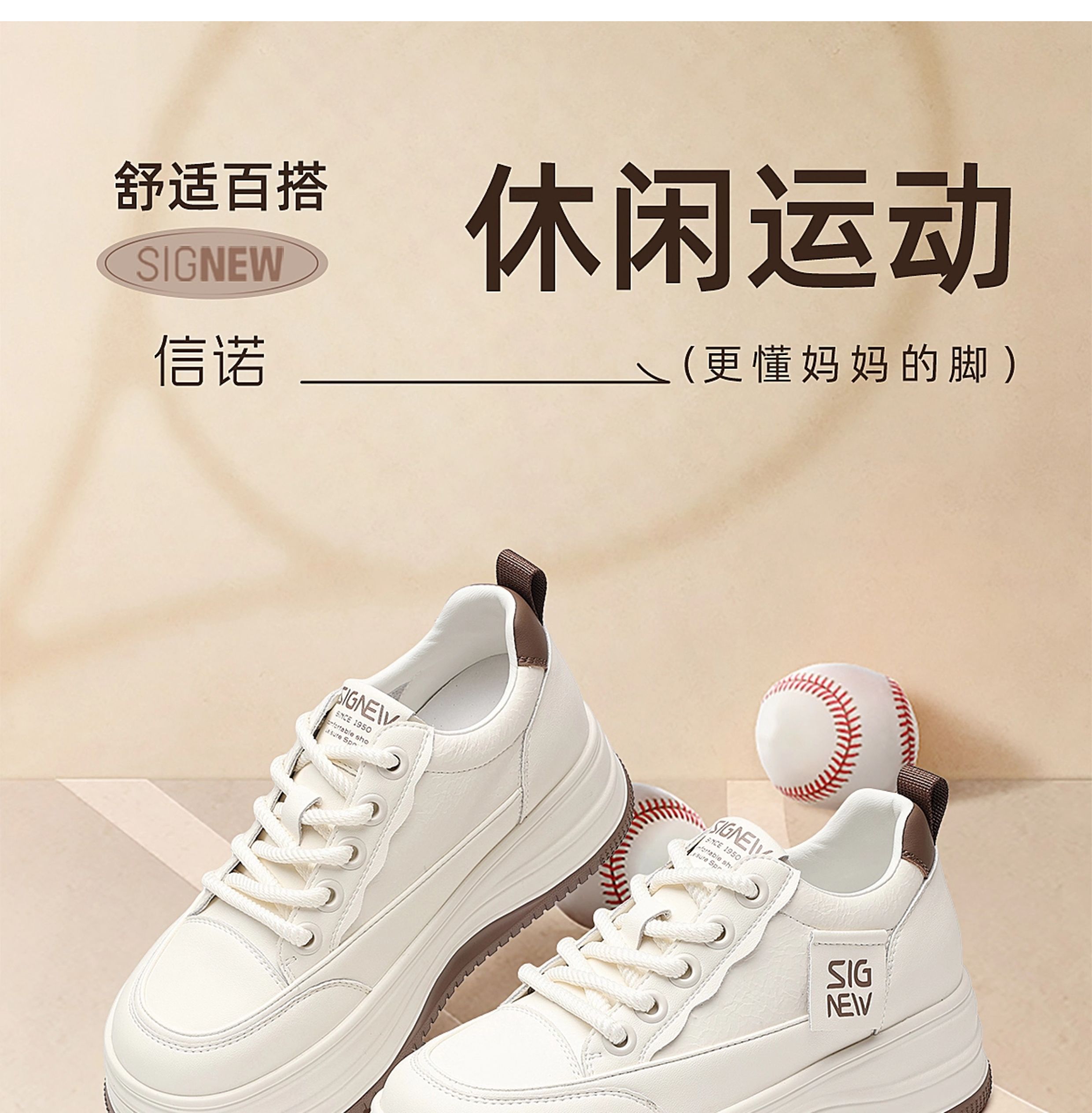 信诺厚底妈妈鞋时尚百搭小白鞋女舒适软底休闲运动鞋2025秋季新款X5Q122-195