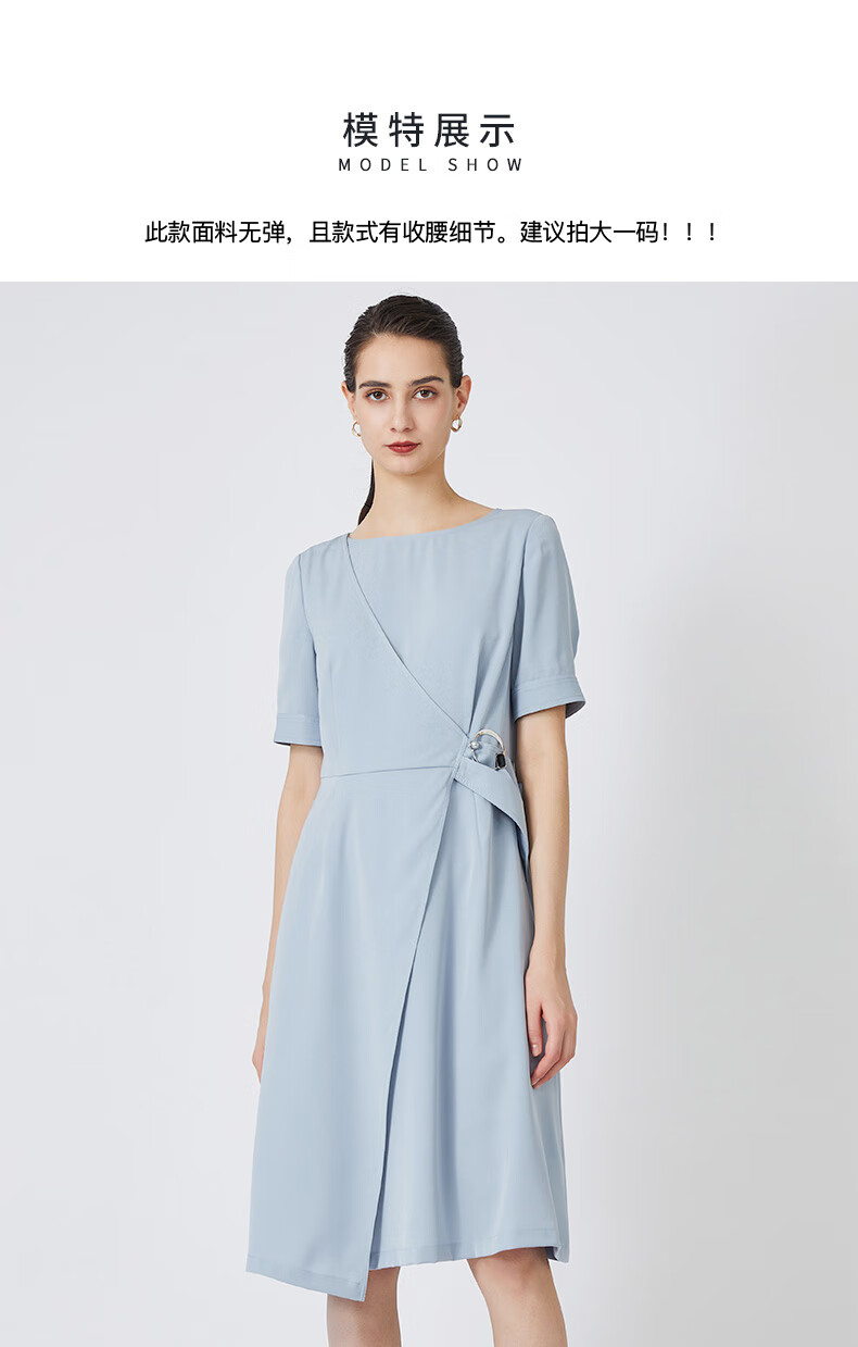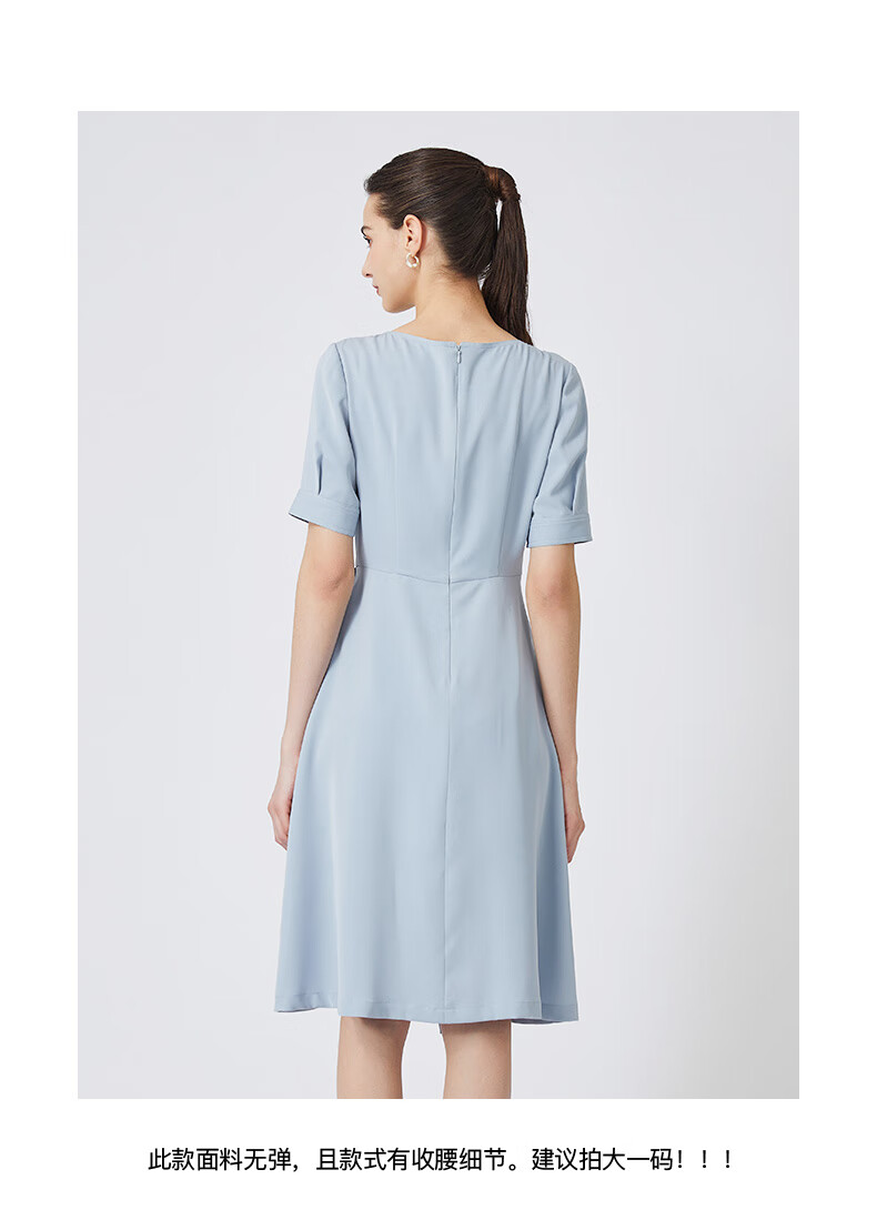 皮尔卡丹女装春季新款蓝色时尚圆领连衣裙知性女裙P01DL24N0