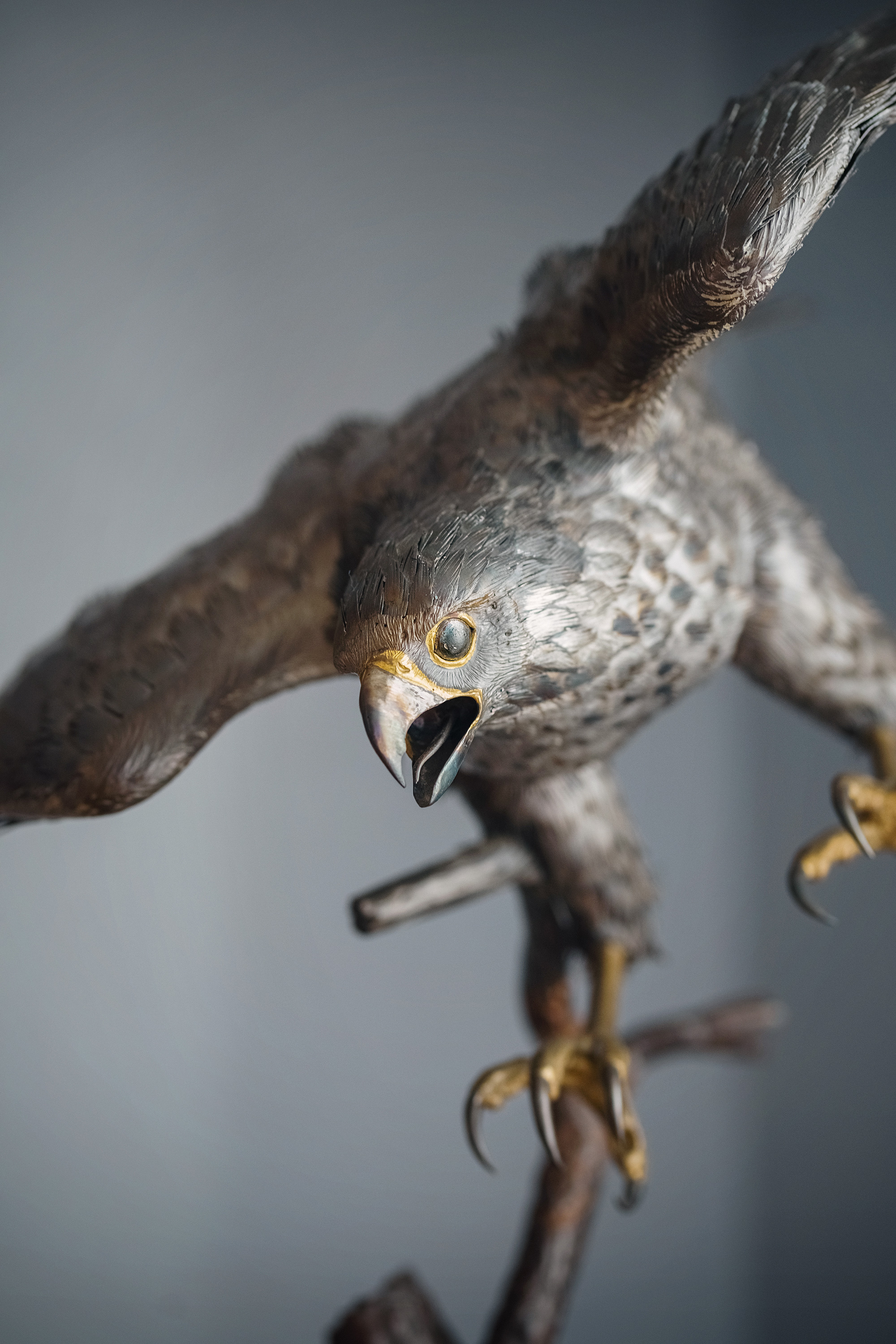 20世纪美国当代艺术家Gil “Levi Hawk” Melton签名创作出品“速度与激情”飞禽系列木质底座装饰雄鹰造型金属雕塑