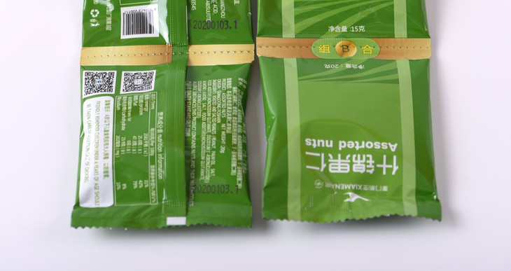 配料:淮盐花生(花生仁、氢化植物油、食用盐、食品添加剂(谷氨酸钠、5’-呈味核苷酸二钠))扁桃仁(扁桃仁、氢化植物油、食用盐、食品添加剂(谷氨酸钠、5’-呈味核苷酸二钠))