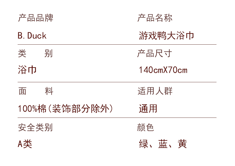 B.Duck小黄鸭游戏鸭大浴巾140*70cm 232
