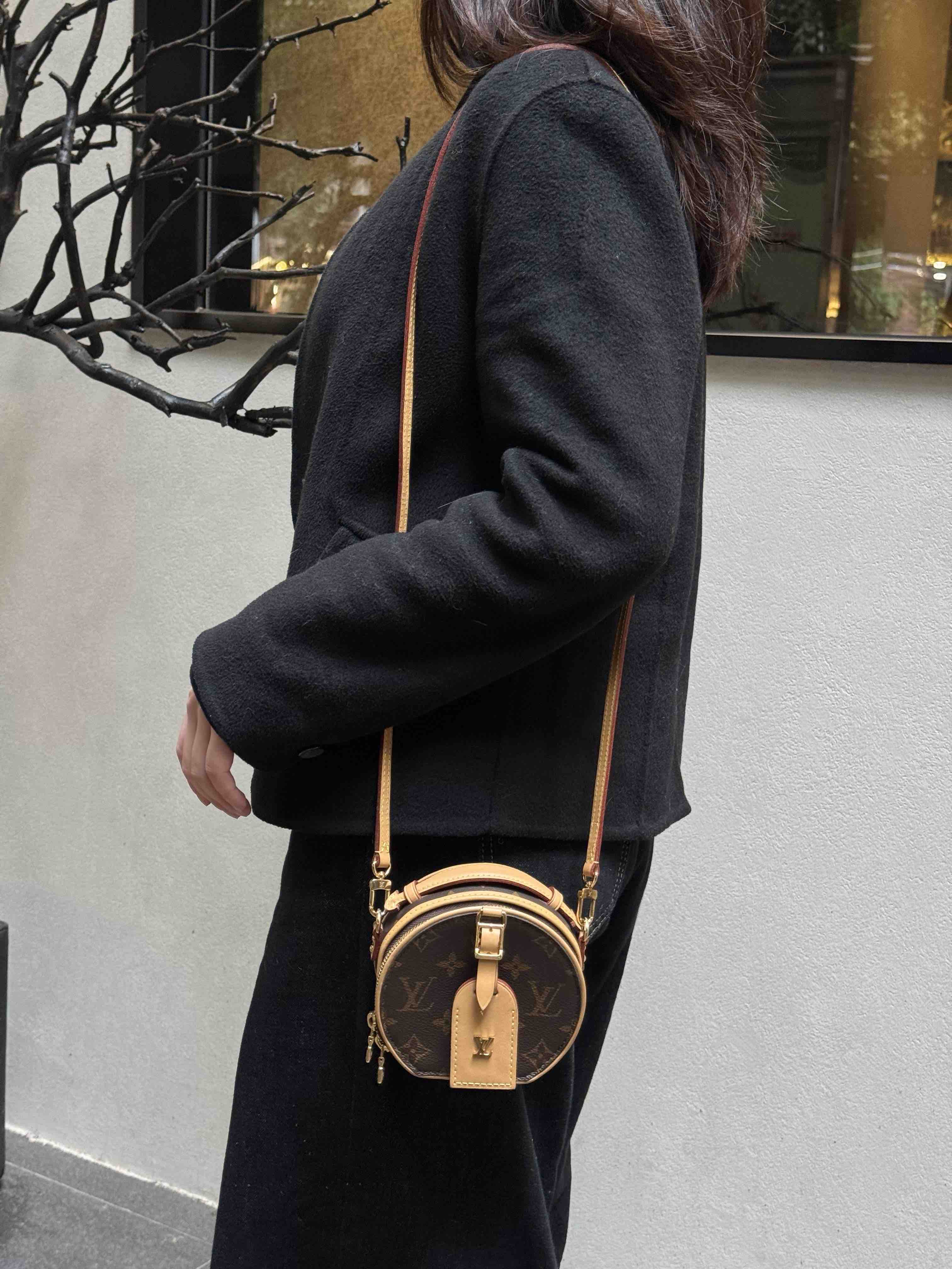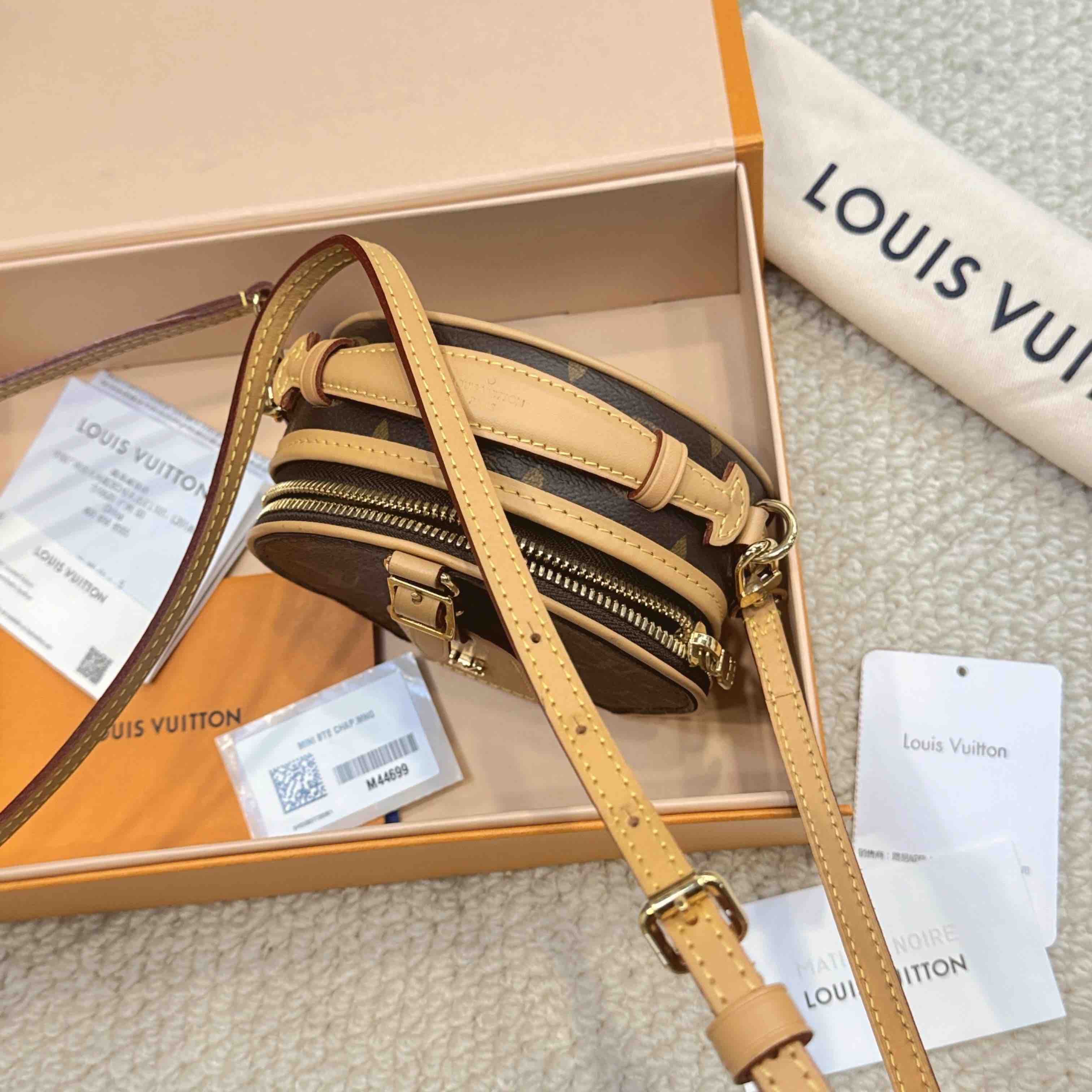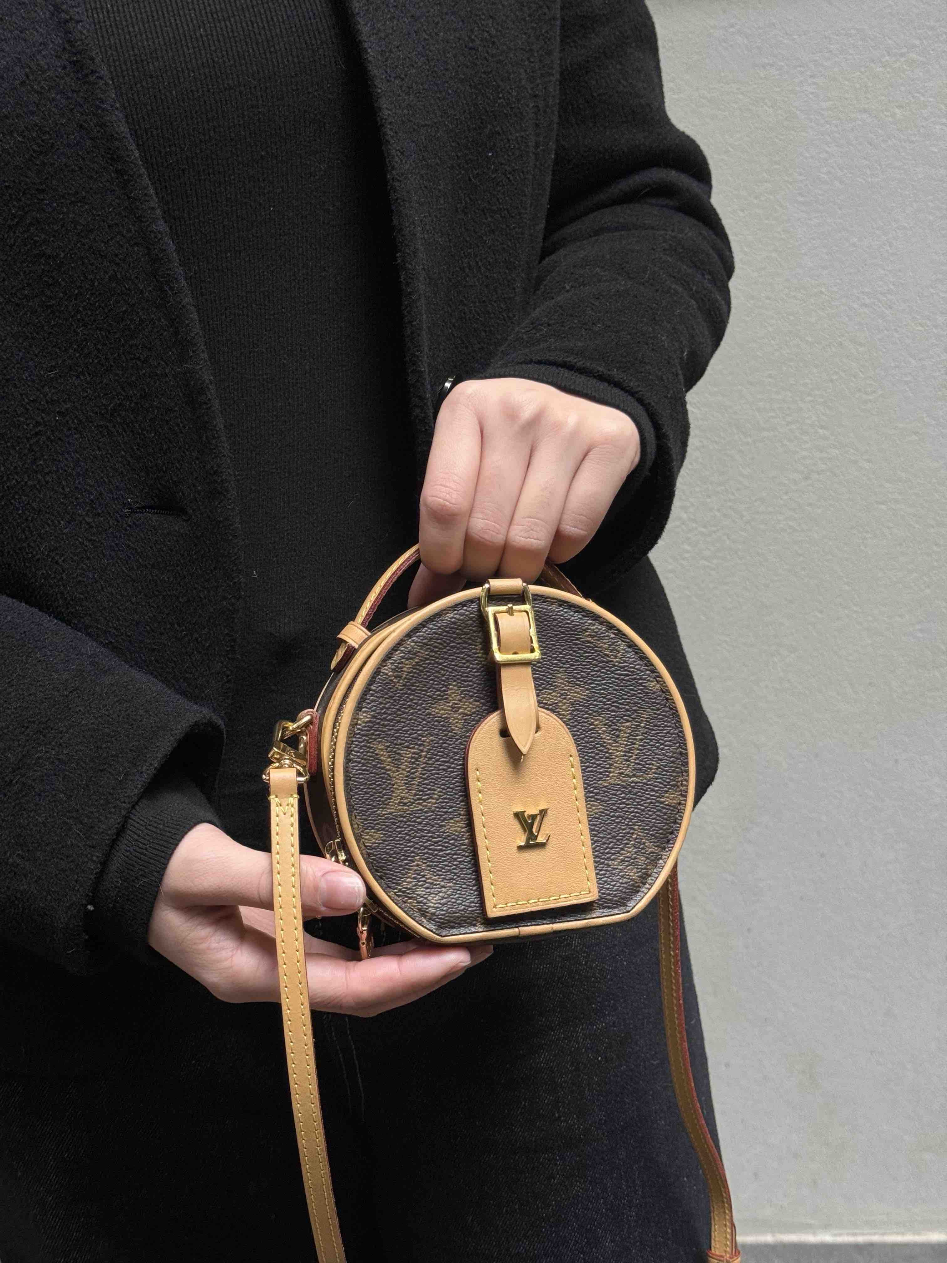 【商品詳情】正品二手 Lv 老花 mini chapeau 圆饼包🧴 97新 9×12 大全套配件:盒子、小票、防尘袋、肩带、行李挂牌。包身植鞣革轻微使用感 内里干净 自用送人都很可