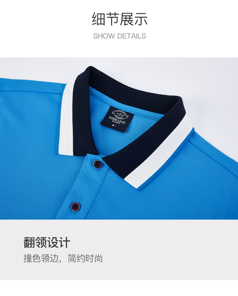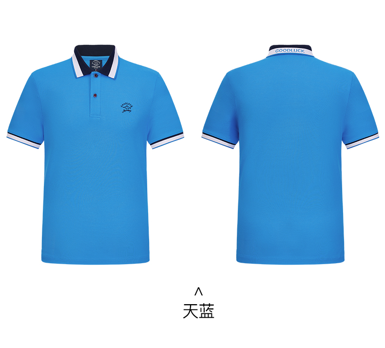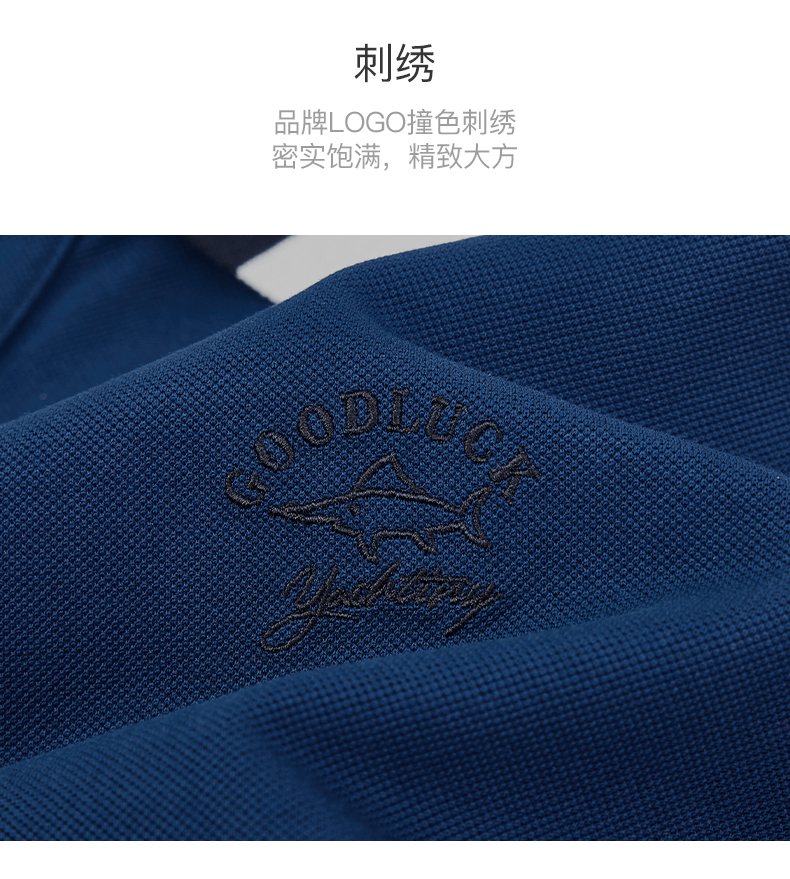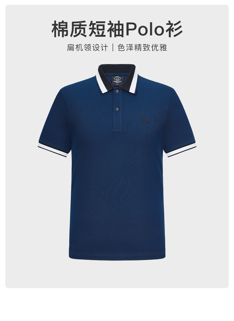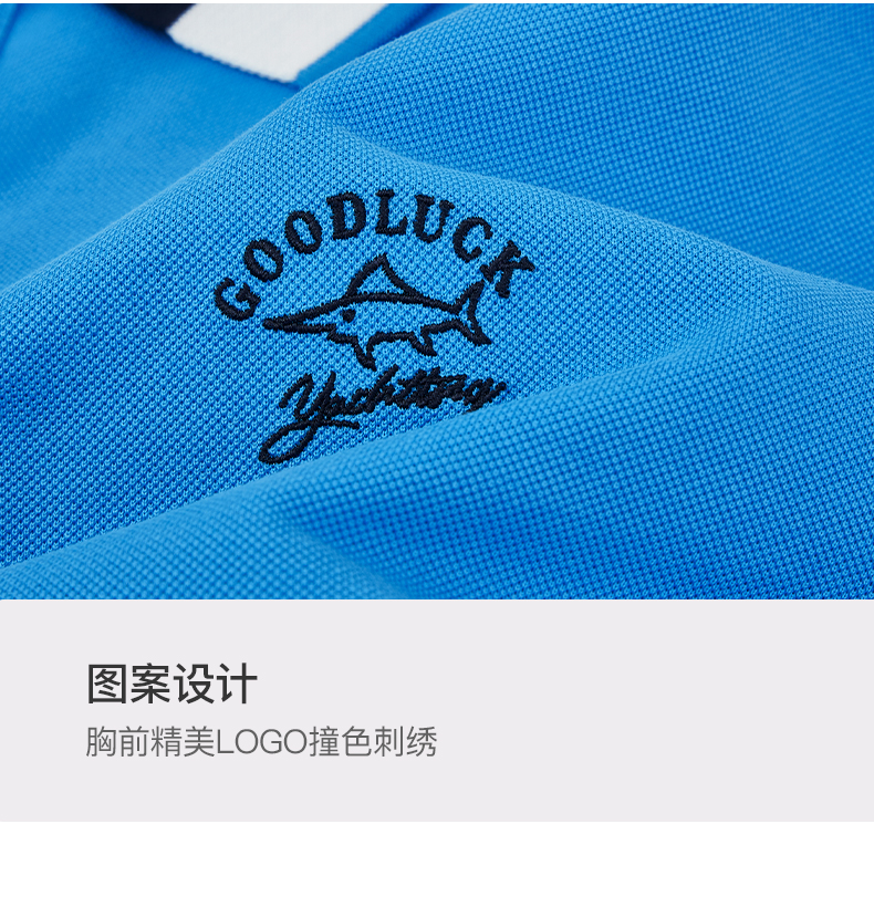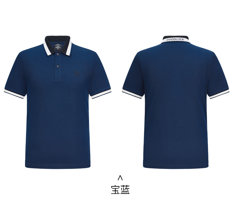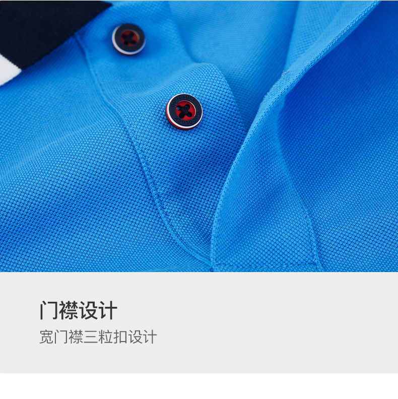 德鲨夏新款蓝色短袖POLO衫男青年时尚撞色休闲上衣翻领t恤