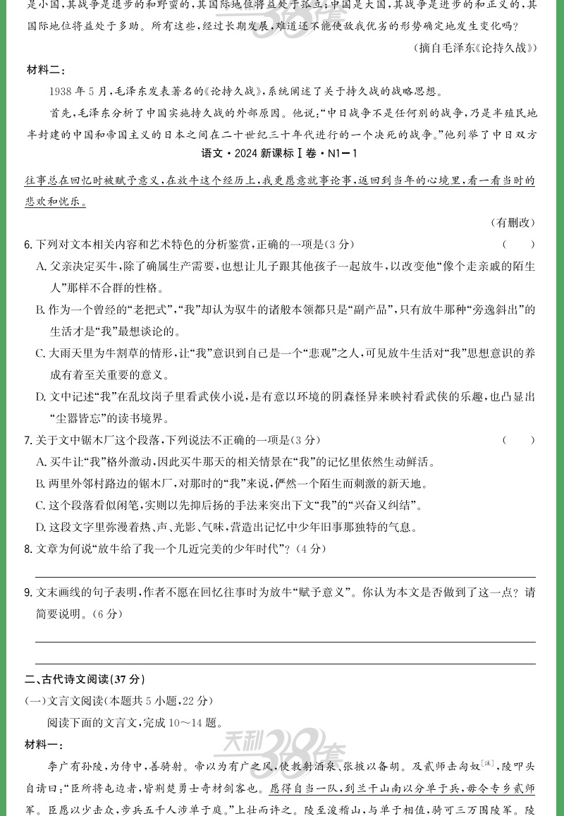 天利38套 2025 10年高考真题 语文 数学 英语 物理 化学 生物 政治 历史 地理