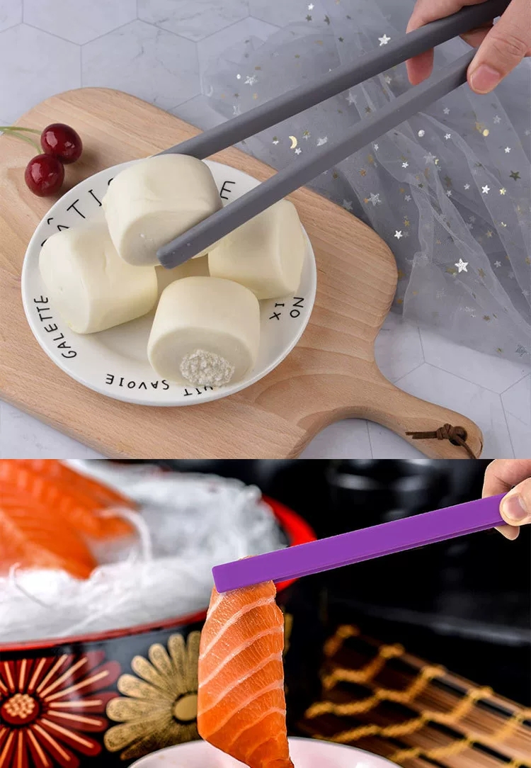 一体硅胶食品夹 厨房防烫耐高温烤肉牛排烘焙烧烤零食硅胶夹子 1个