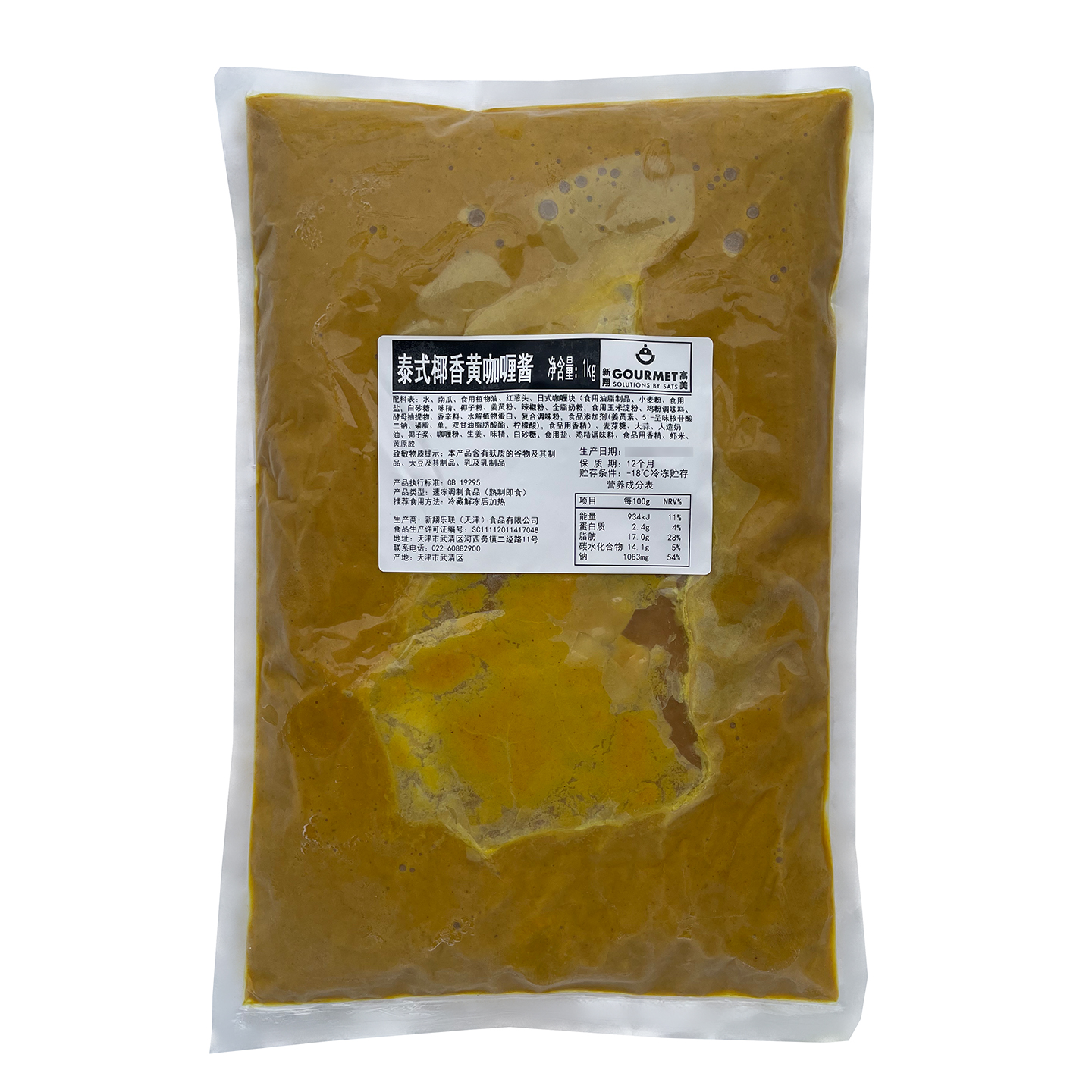 泰式椰香黄咖喱酱1kg商用冷冻泰式咖喱酱椰香咖喱泰国餐饮茶餐厅咖喱饭