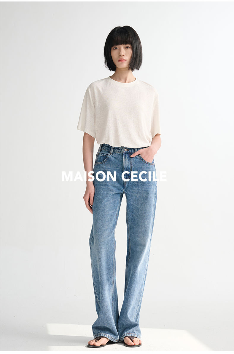 MAISON CECILE 梨型bi入/浅蓝经典实穿百搭直筒牛仔裤
