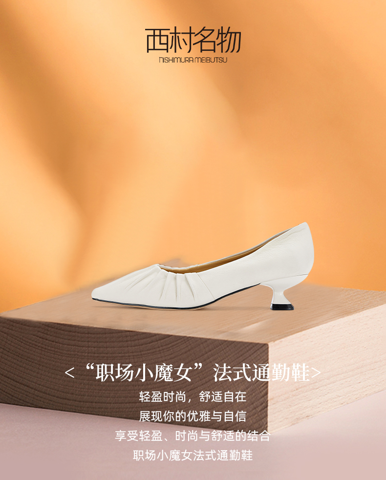 西村名物2024春季新品真皮时尚高跟鞋法式气质通勤鞋女鞋X24AE11511