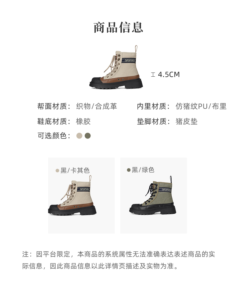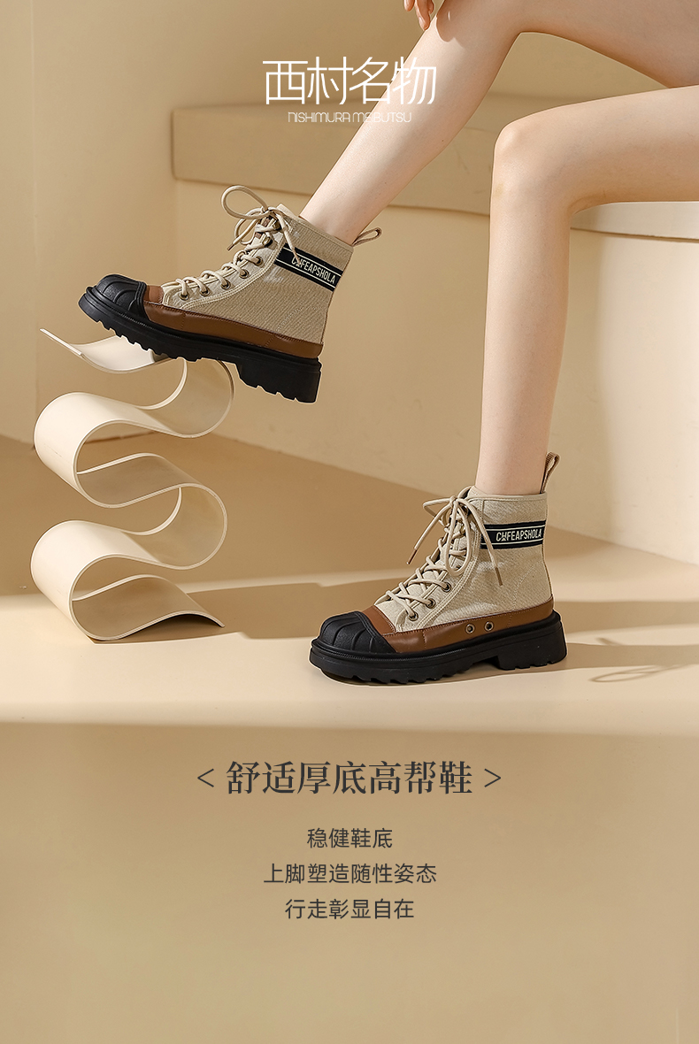 西村名物2023秋季新品舒适厚底高帮鞋机车风短靴登山马丁靴T23DS45731