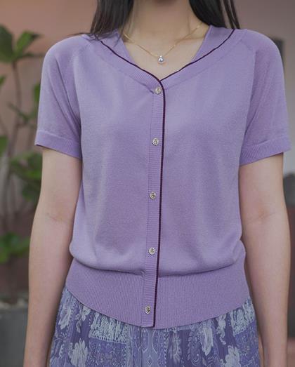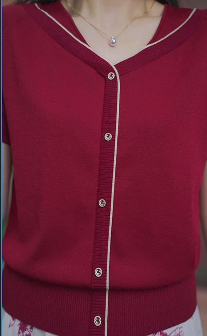 司歌针织衫轻薄透气收腰上衣v领夏女天丝G93G3951