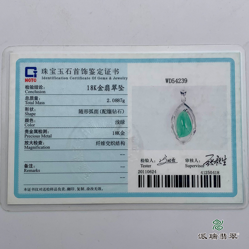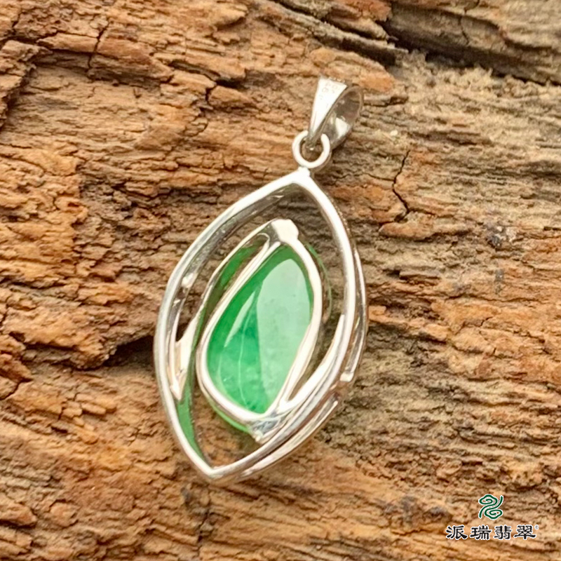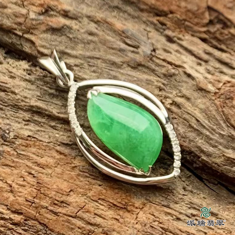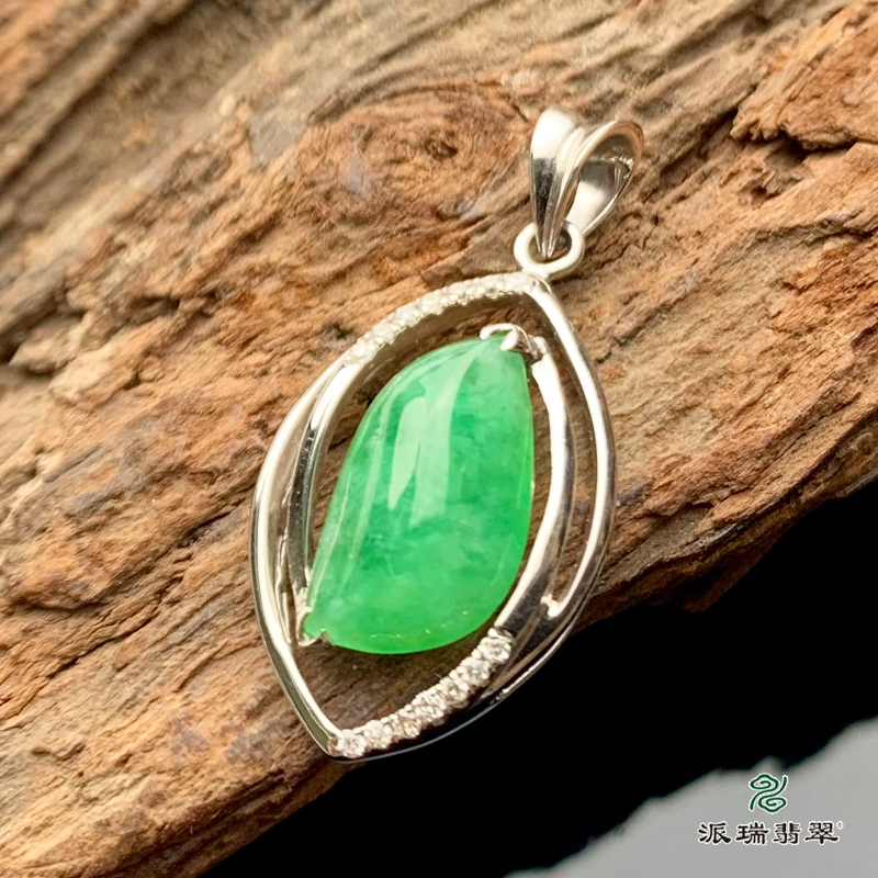派瑞翡翠 18k金翡翠挂件 糯冰种 绿色