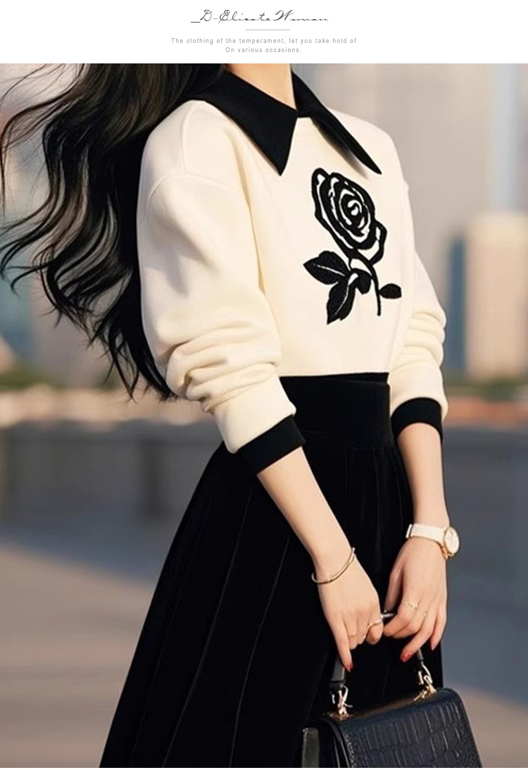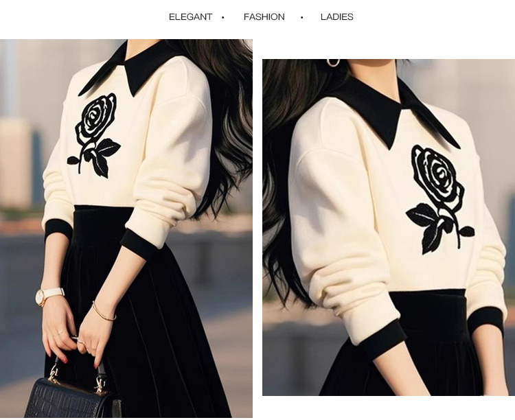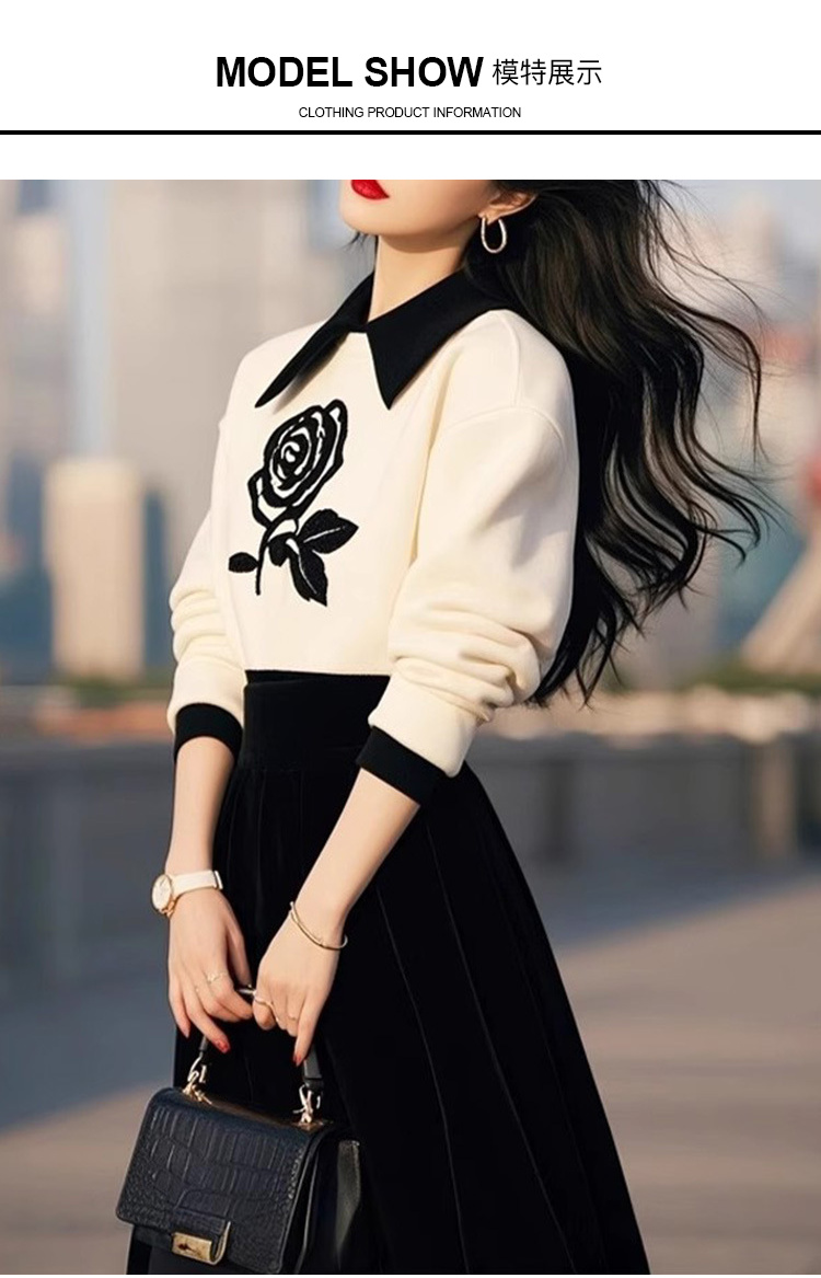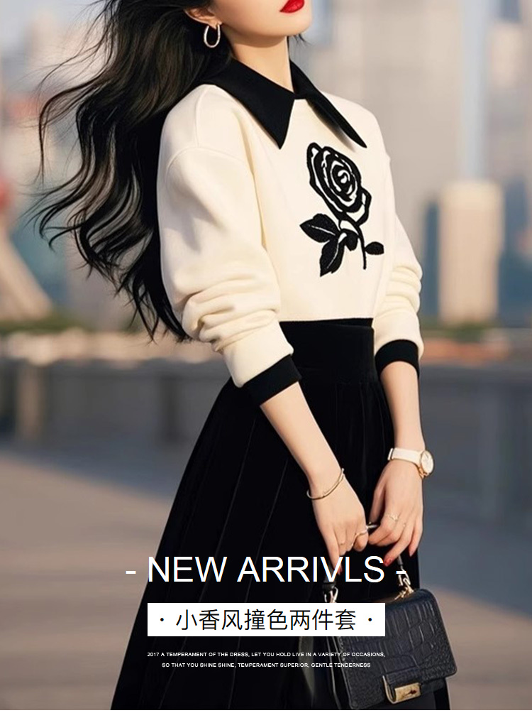 奢姿2024年冬季新款大码女装撞色玫瑰套装胖妹妹小香风半裙两件套9944991985