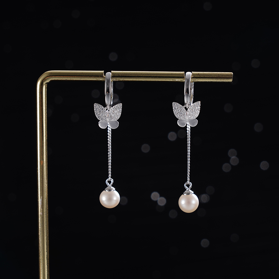 子佩集S925银珍珠耳环【Y-9072】纯银珍珠扣环耳圈2409