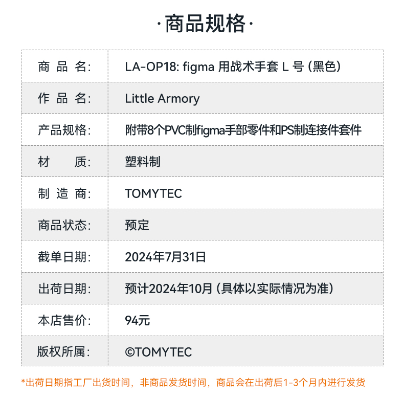 【GSC现货】LA-OP18: figma 用战术手套 L 号(黑色)