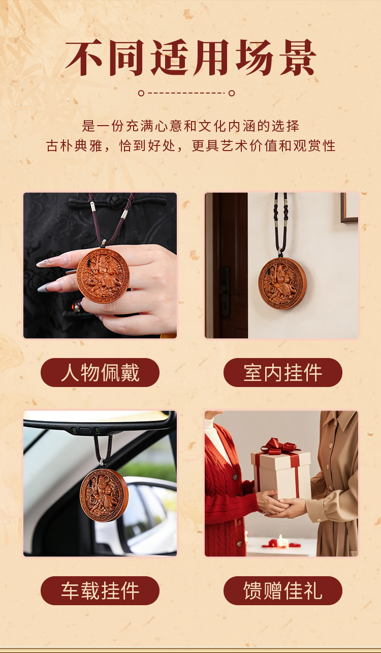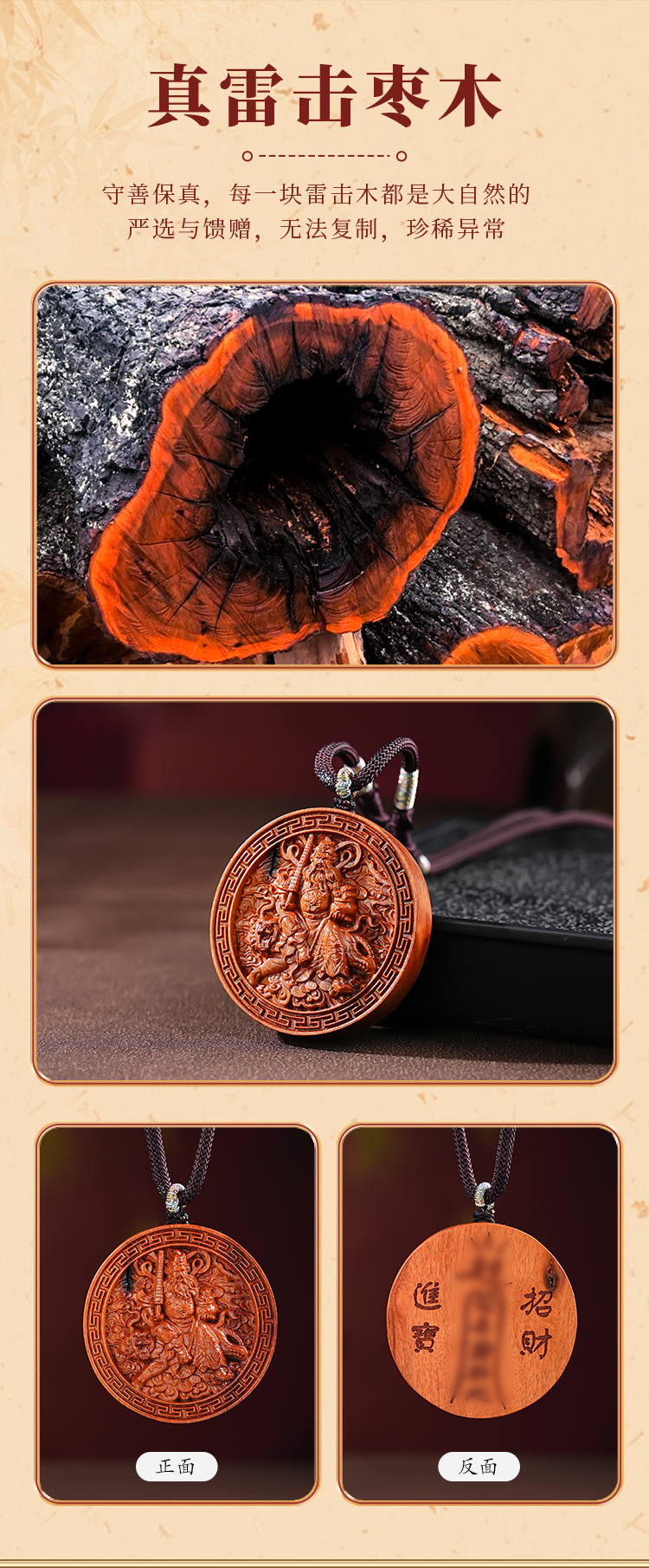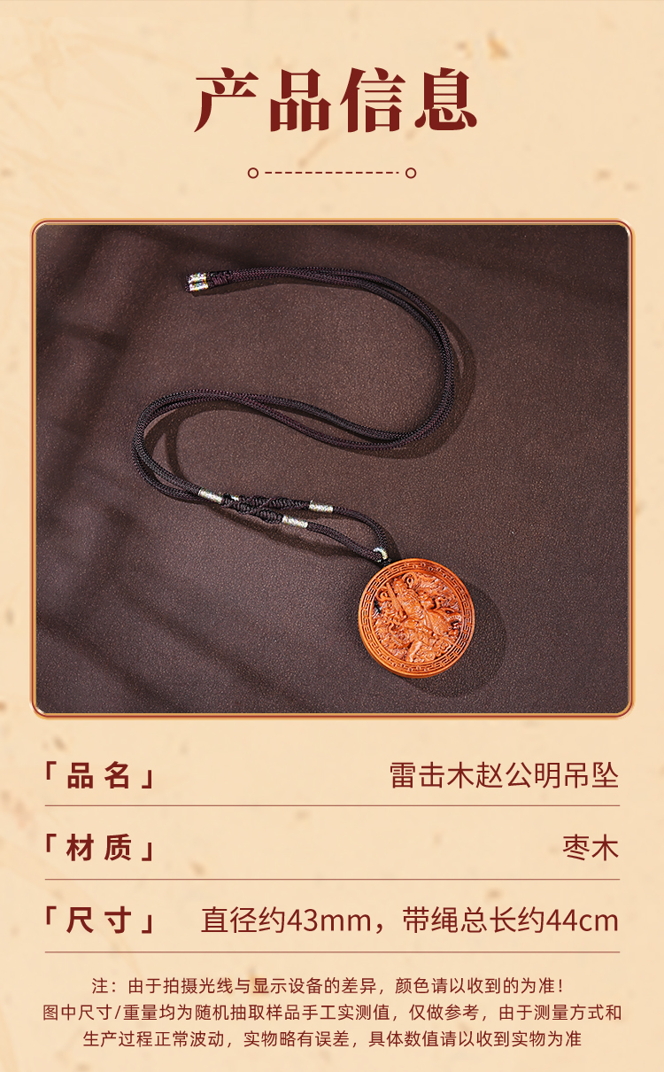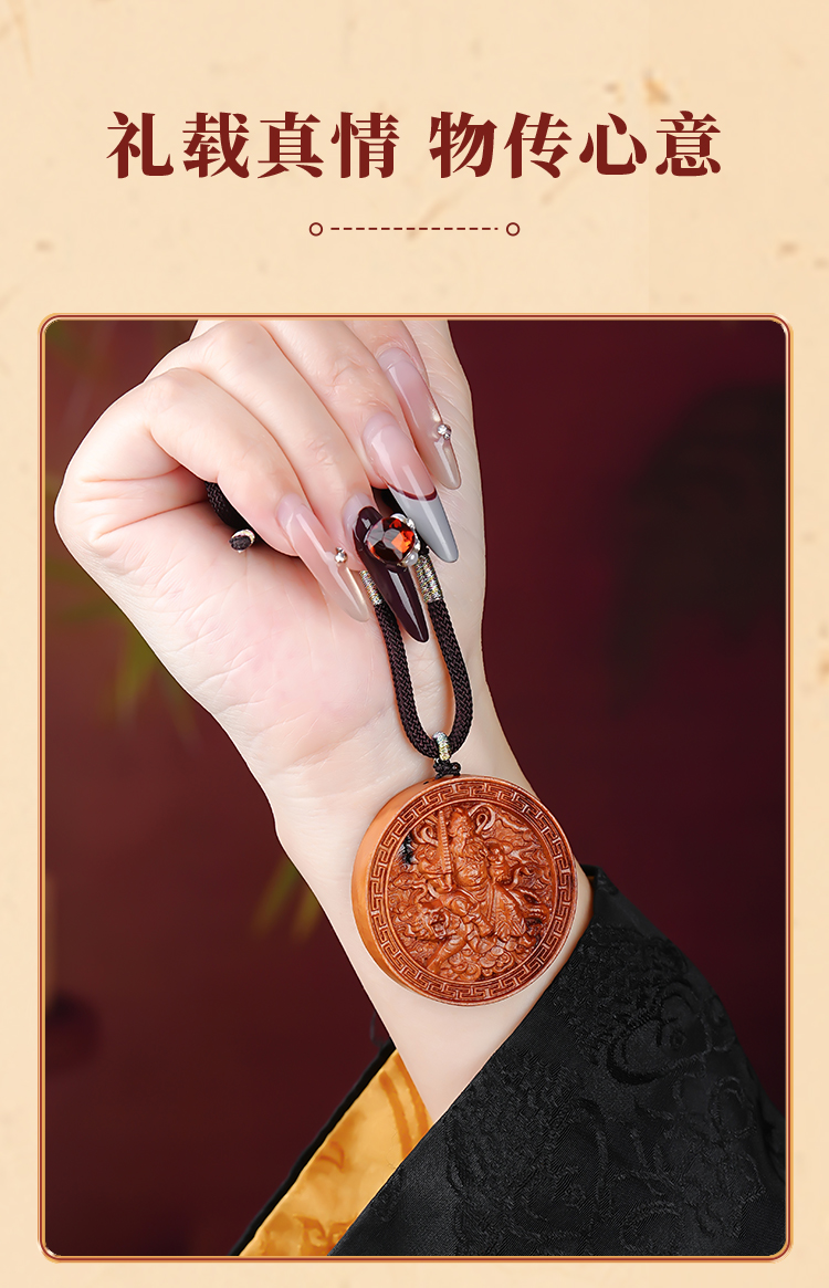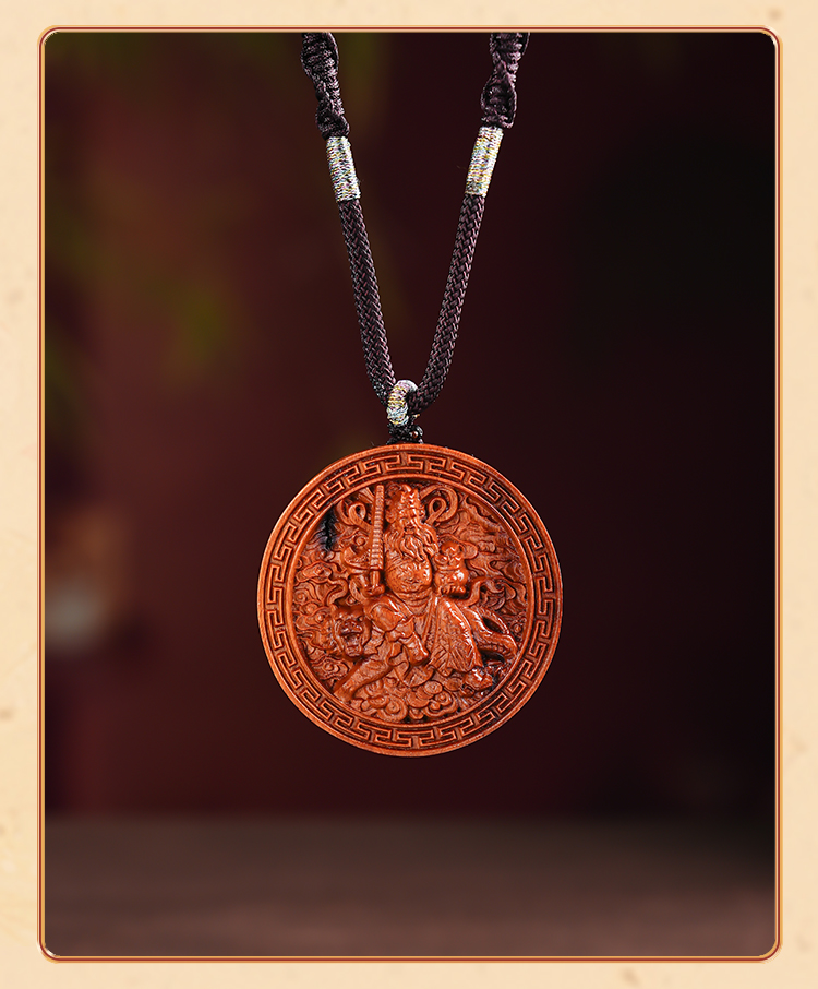 雷击木赵公明吊坠精工雕刻木作饰品文玩小众设计感吊饰