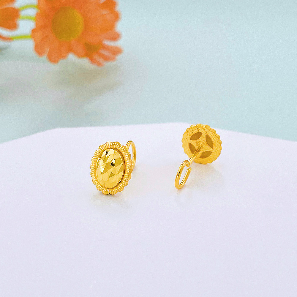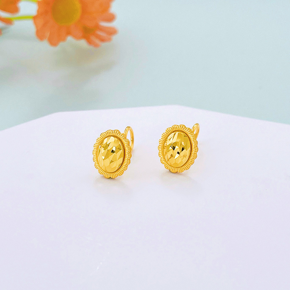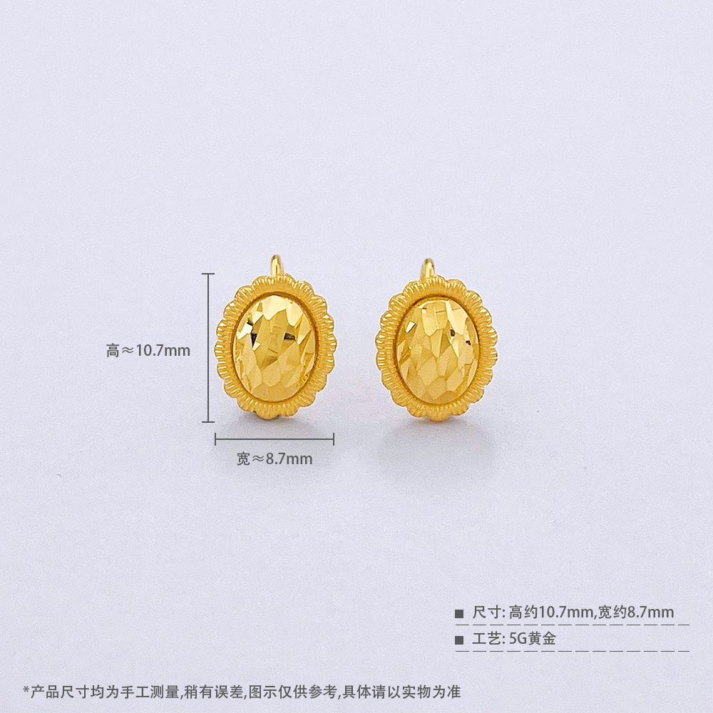 【限时7.5折】【定价黄金】足金999 5G黄金拉丝边框鱼鳞鸽子蛋耳饰耳钉(AG5GES00145)(预售产品下单后不退款不退货不换货不补差价)(预售产品下单后不退款不退货不换货不补差价)