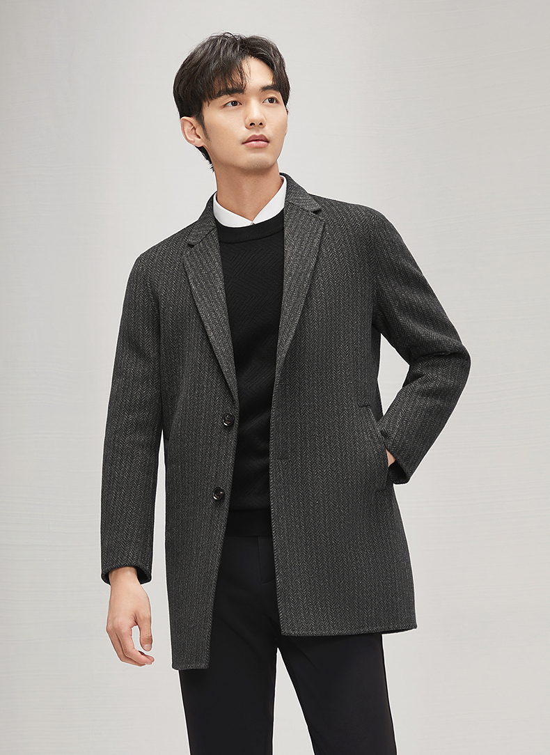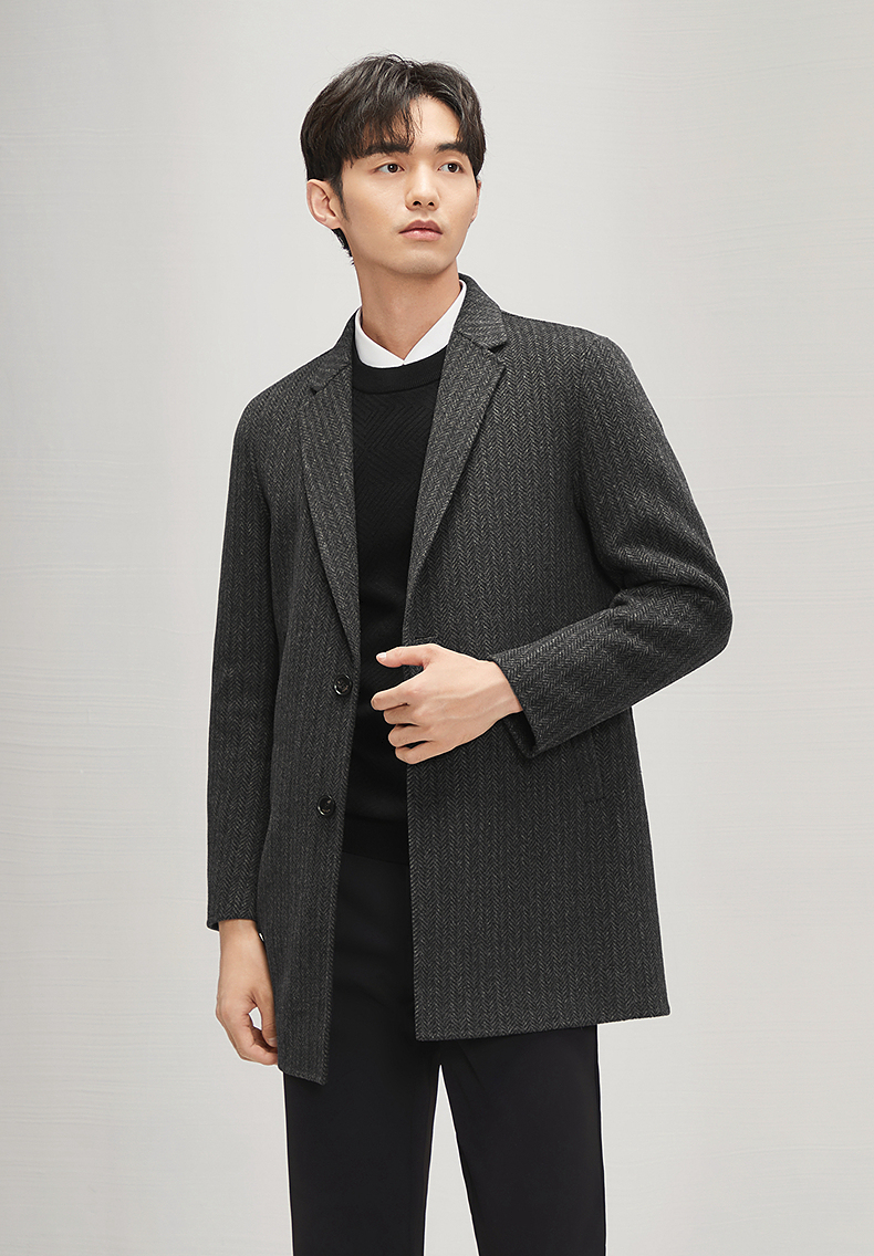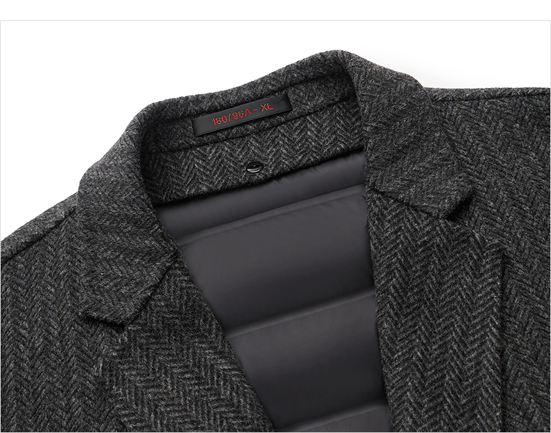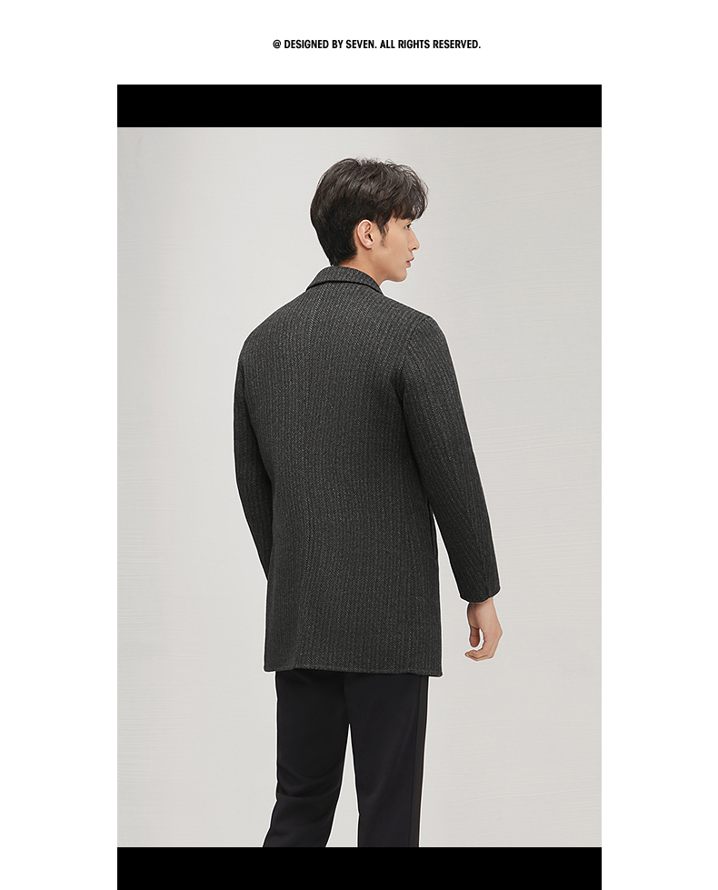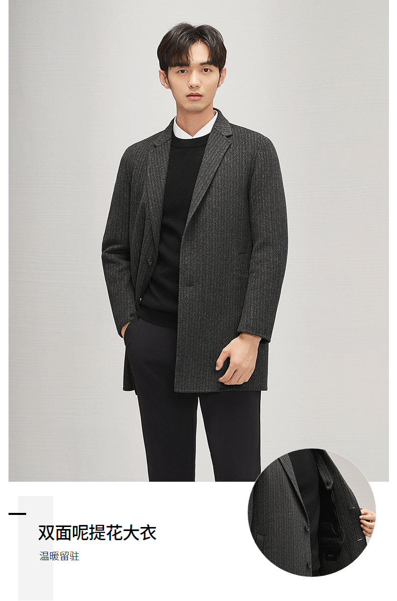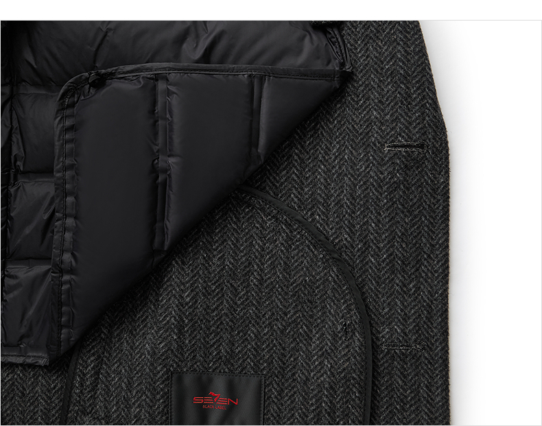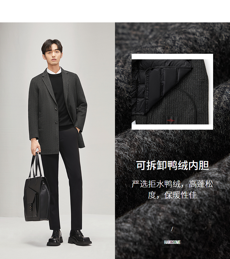【含羊毛】柒牌人字纹毛呢大衣男可拆卸羽绒内胆双面呢保暖厚外套 127D70180