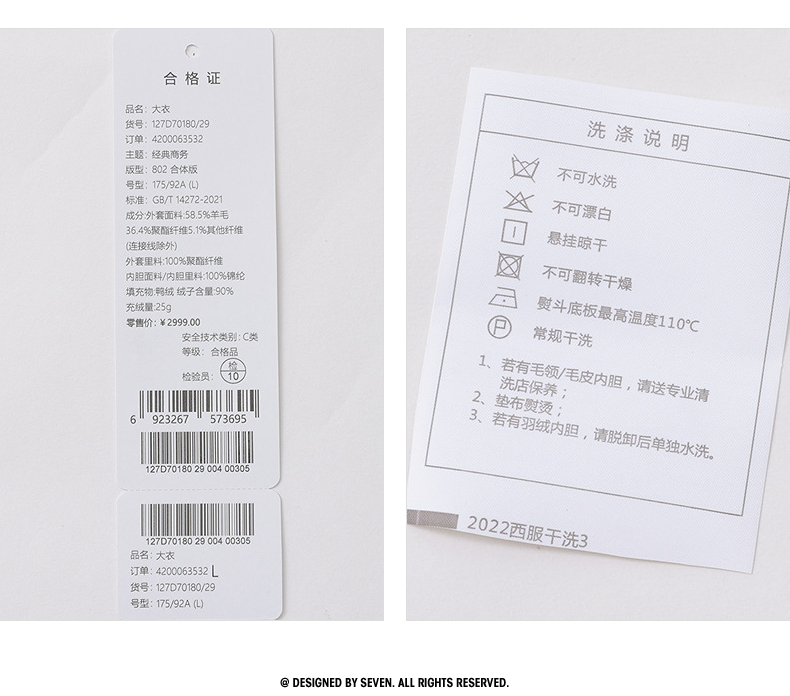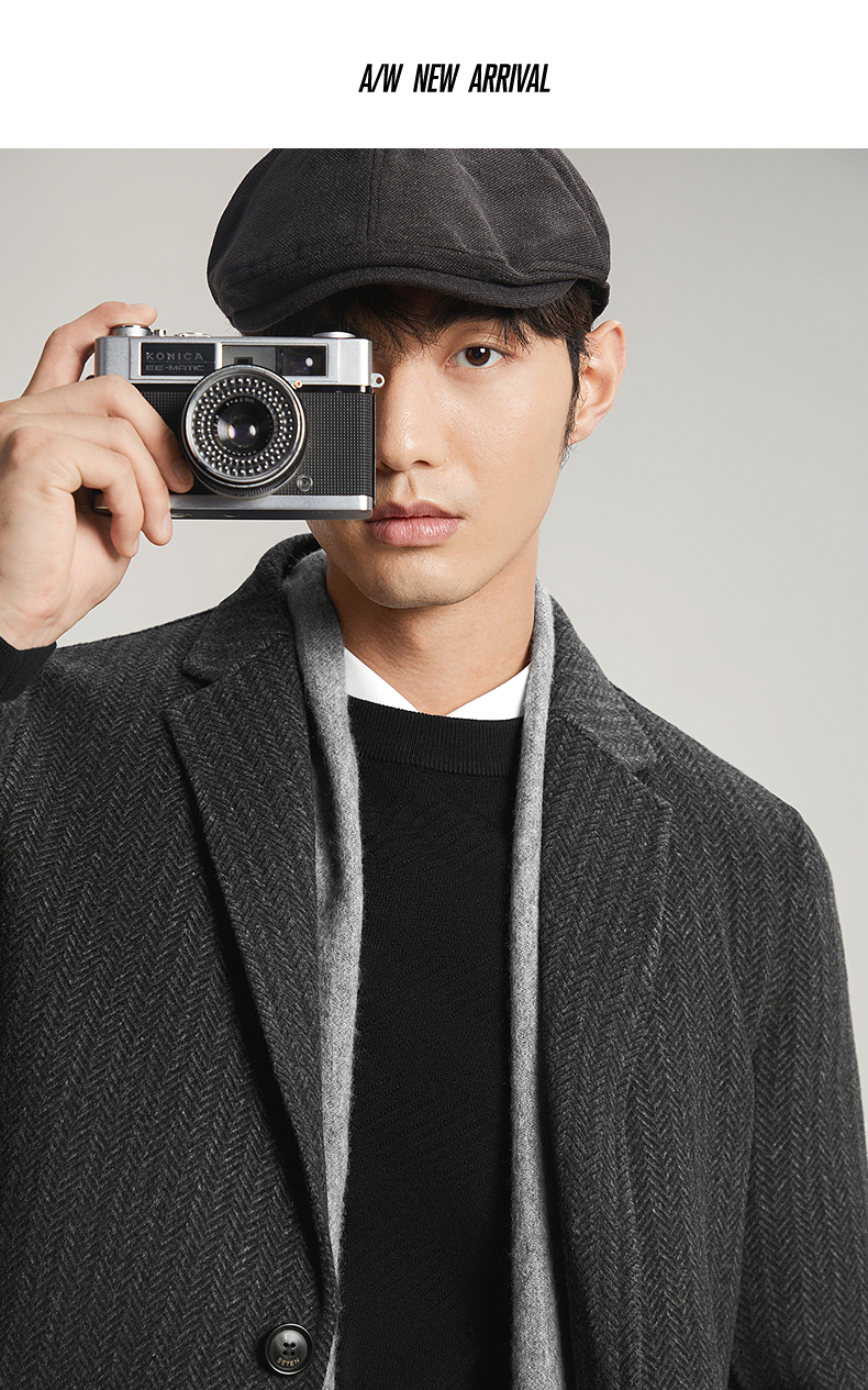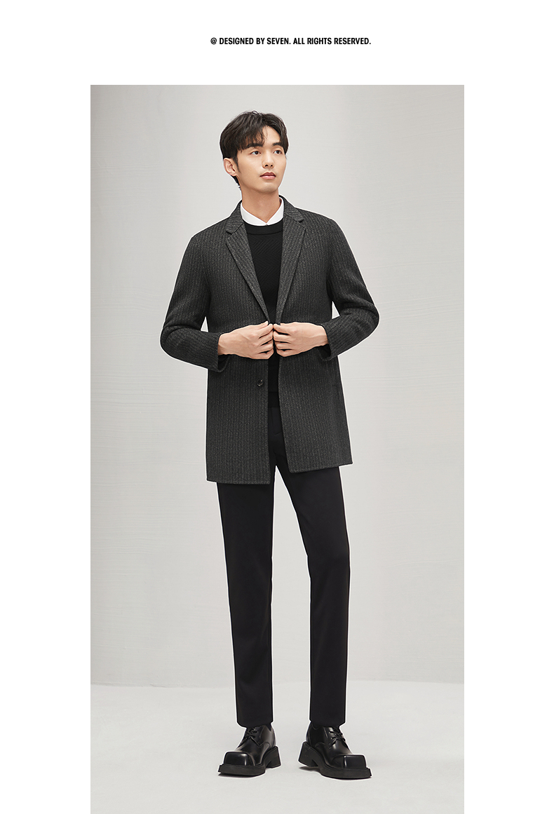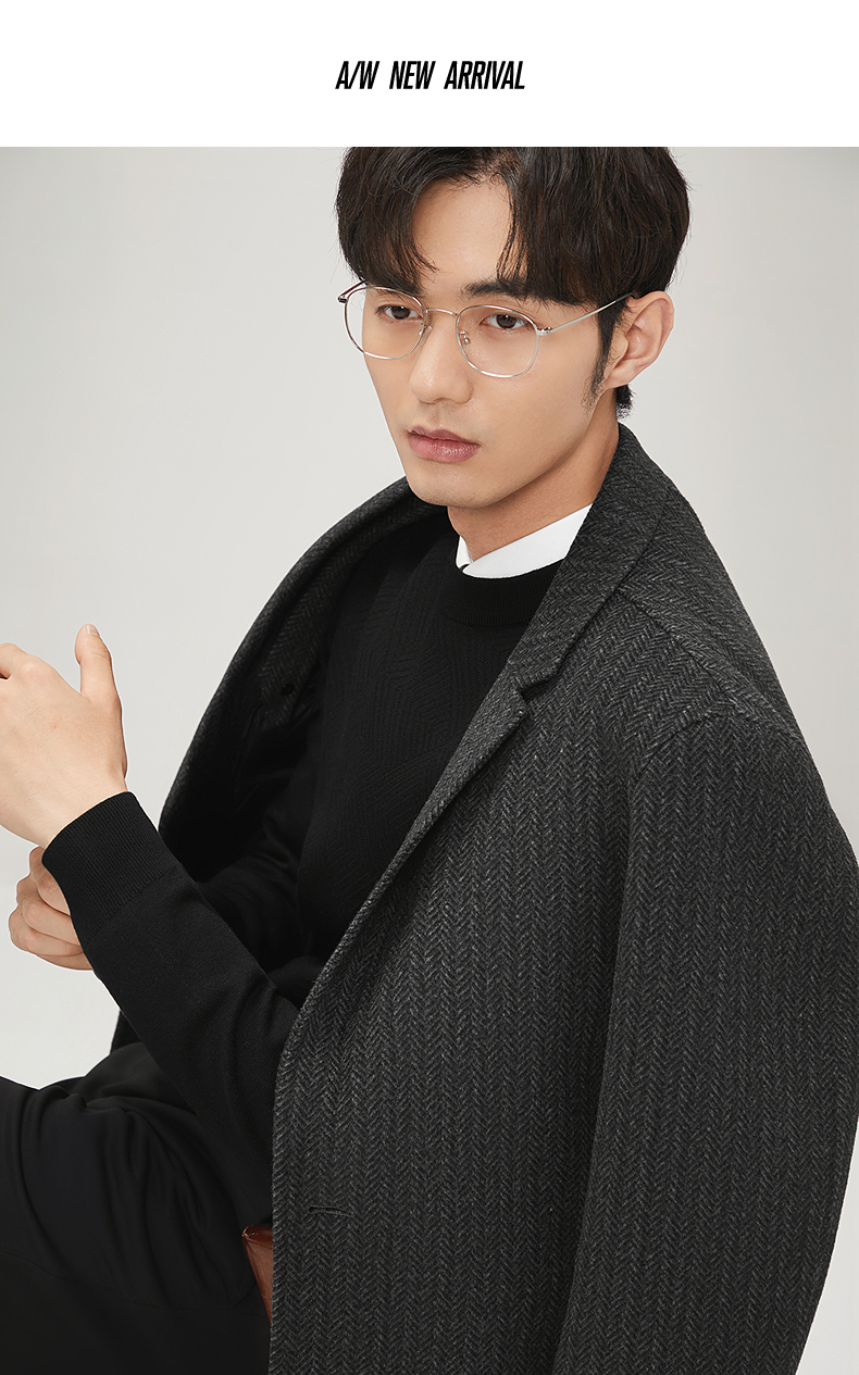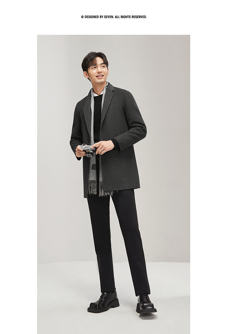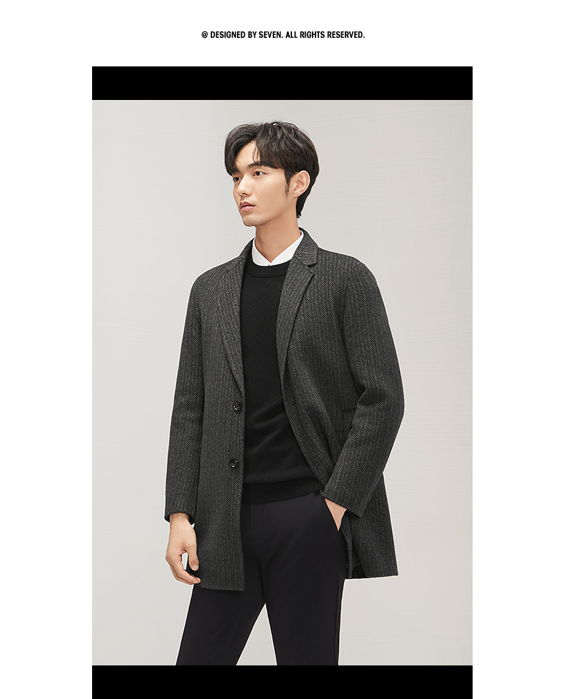 【含羊毛】柒牌人字纹毛呢大衣男可拆卸羽绒内胆双面呢保暖厚外套 127D70180