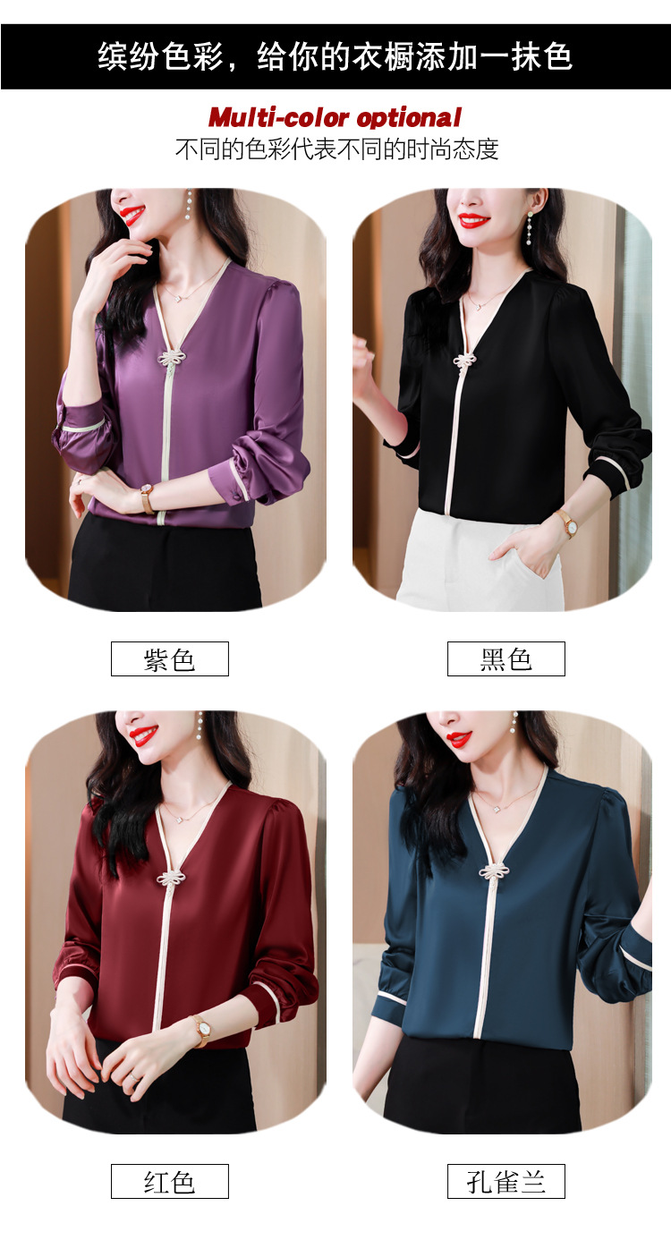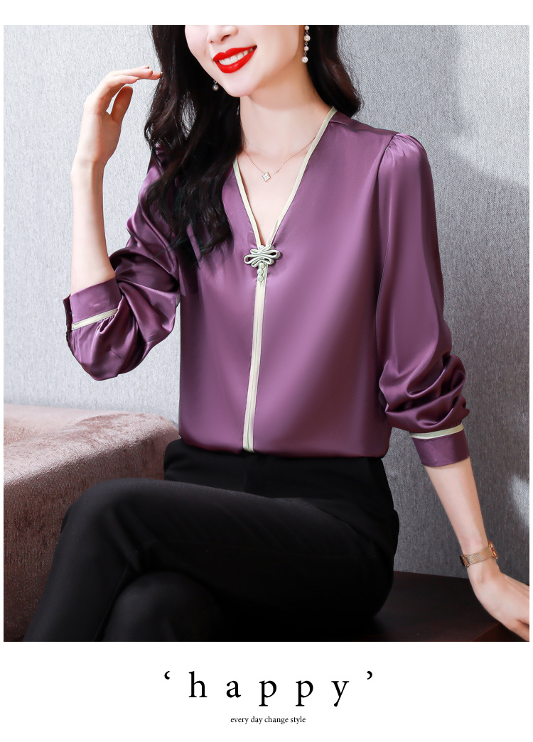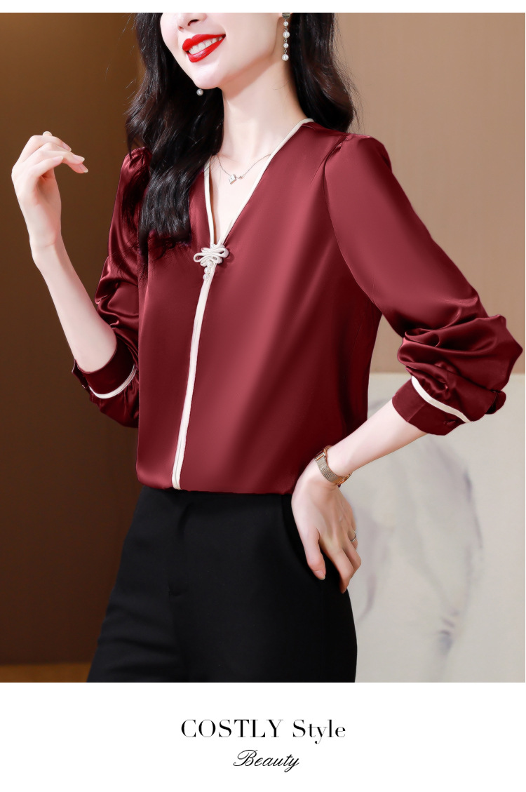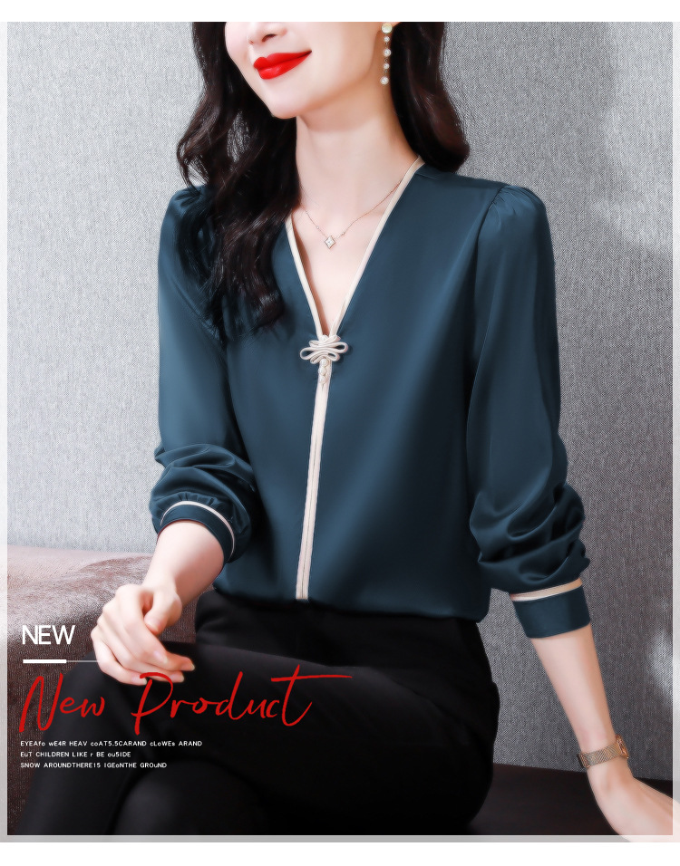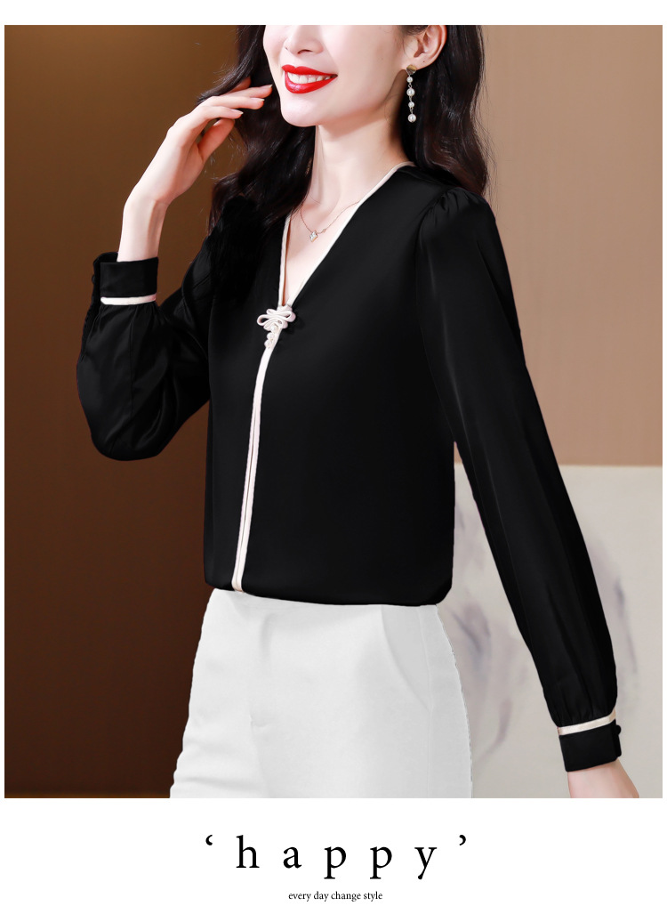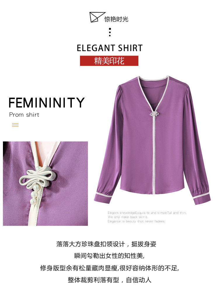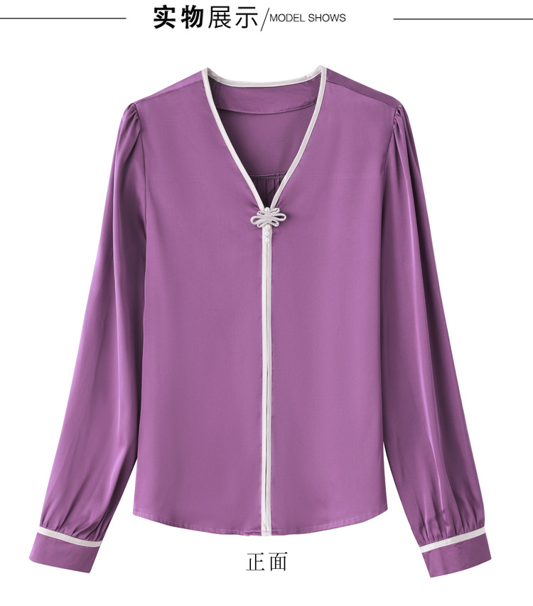 复古盘扣V领衬衫,女长袖衬衣秋季新款时尚洋气质上衣KQL-369H1728