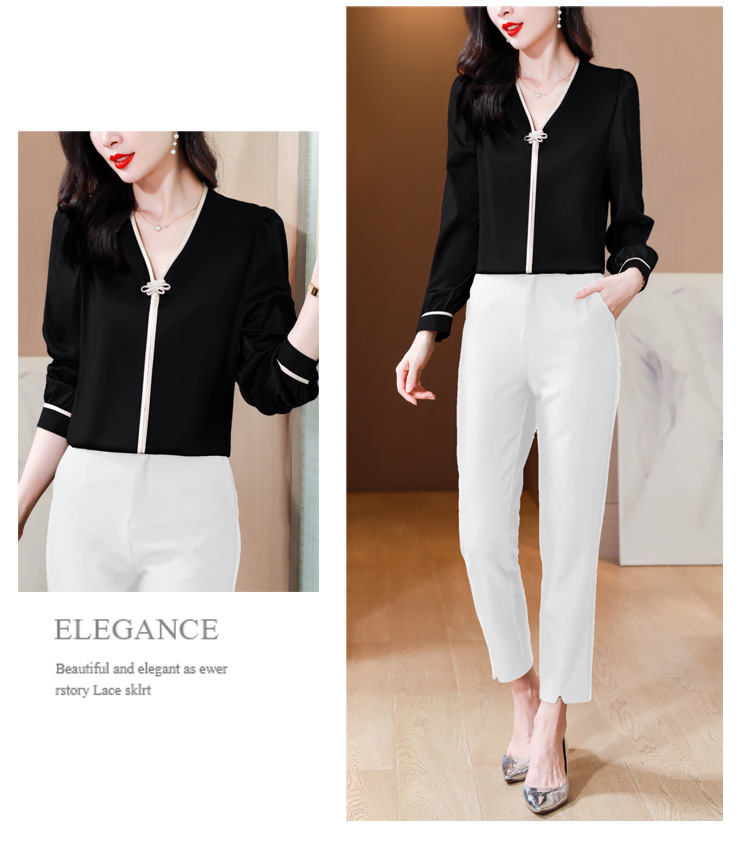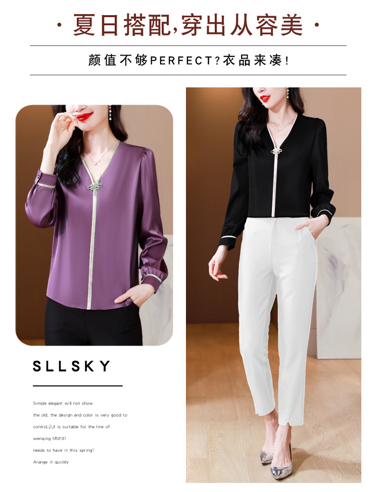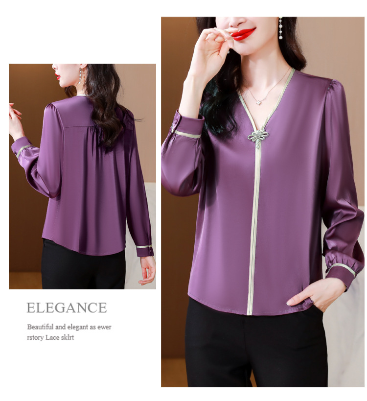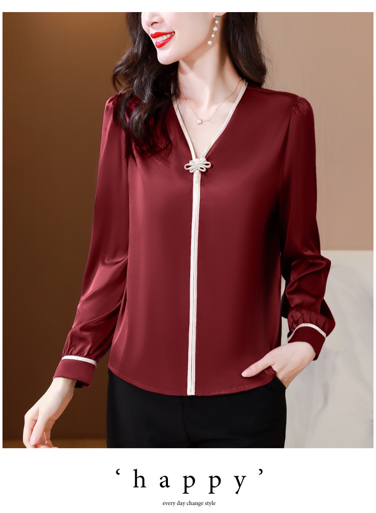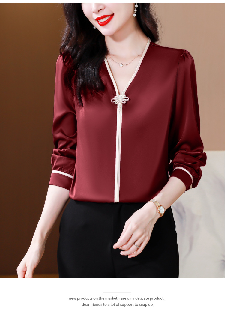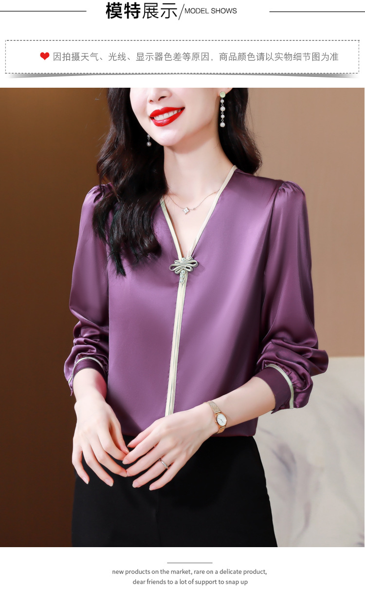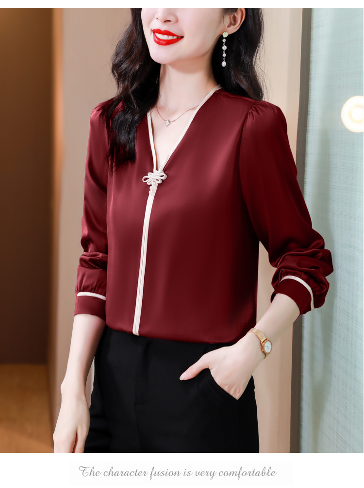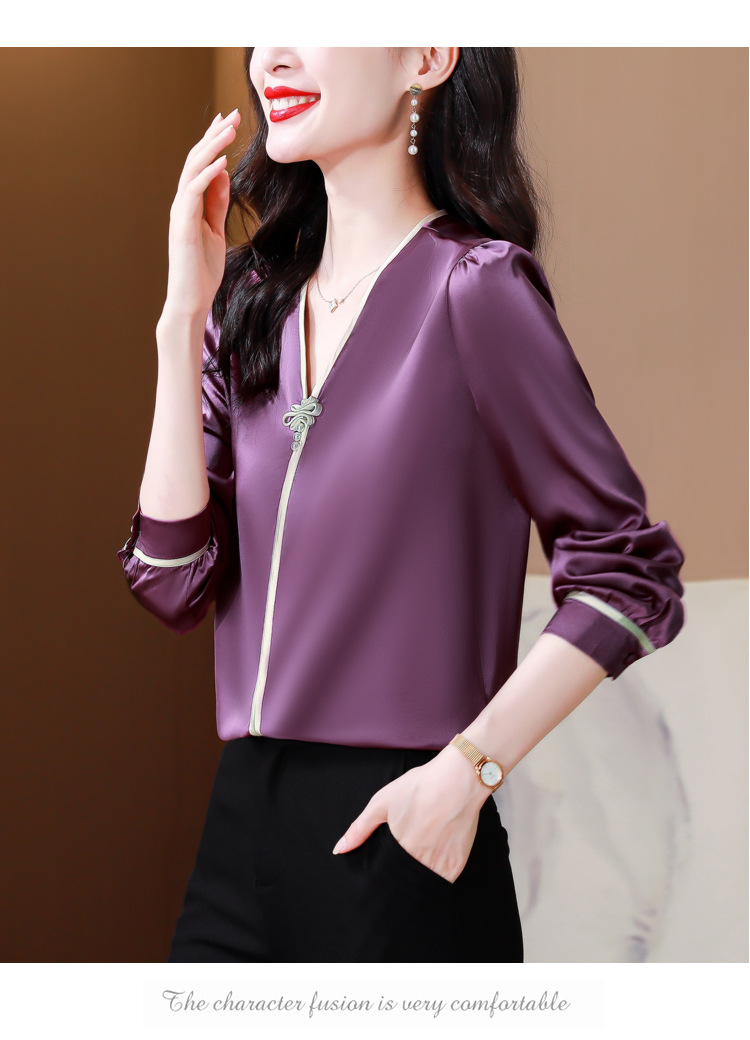 复古盘扣V领衬衫,女长袖衬衣秋季新款时尚洋气质上衣KQL-369H1728