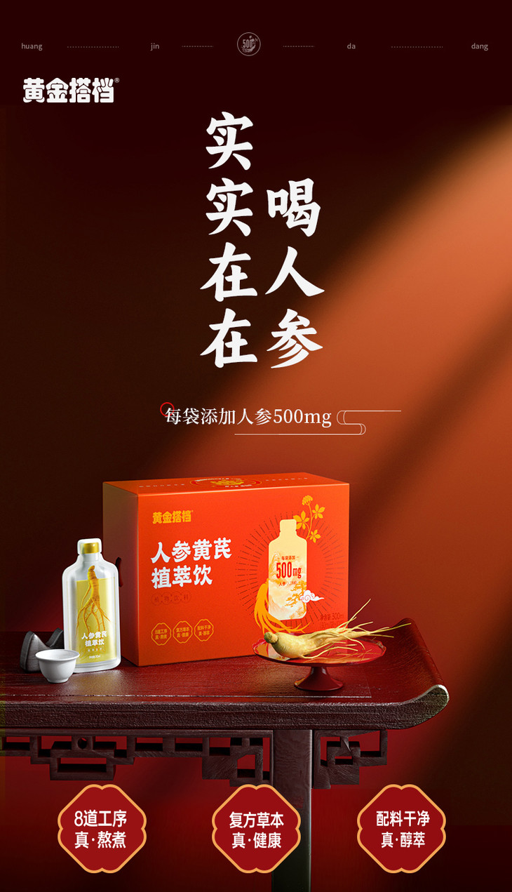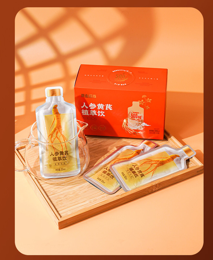 【高含量更实在】黄金搭档人参黄芪植萃饮 草本口服液 送礼中式滋补品植物饮料 小袋分装开袋即食 300ml(30ml*10袋)/盒