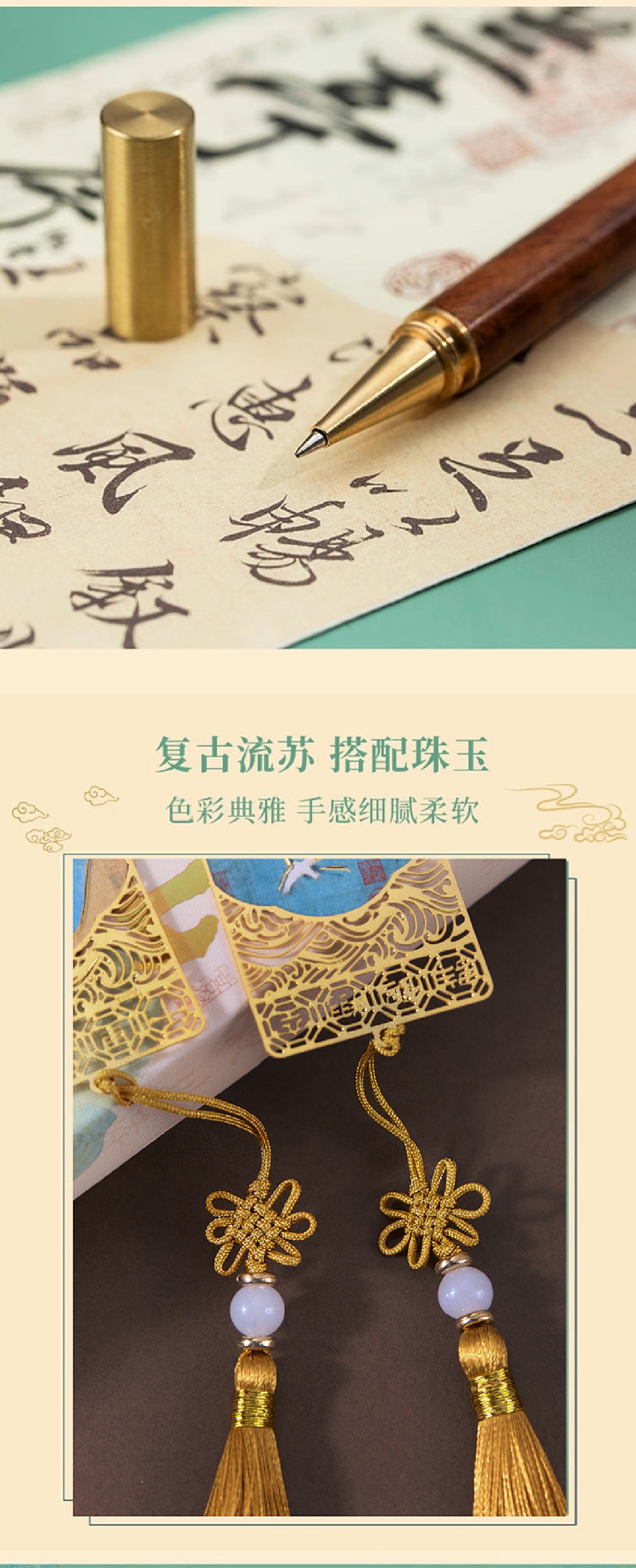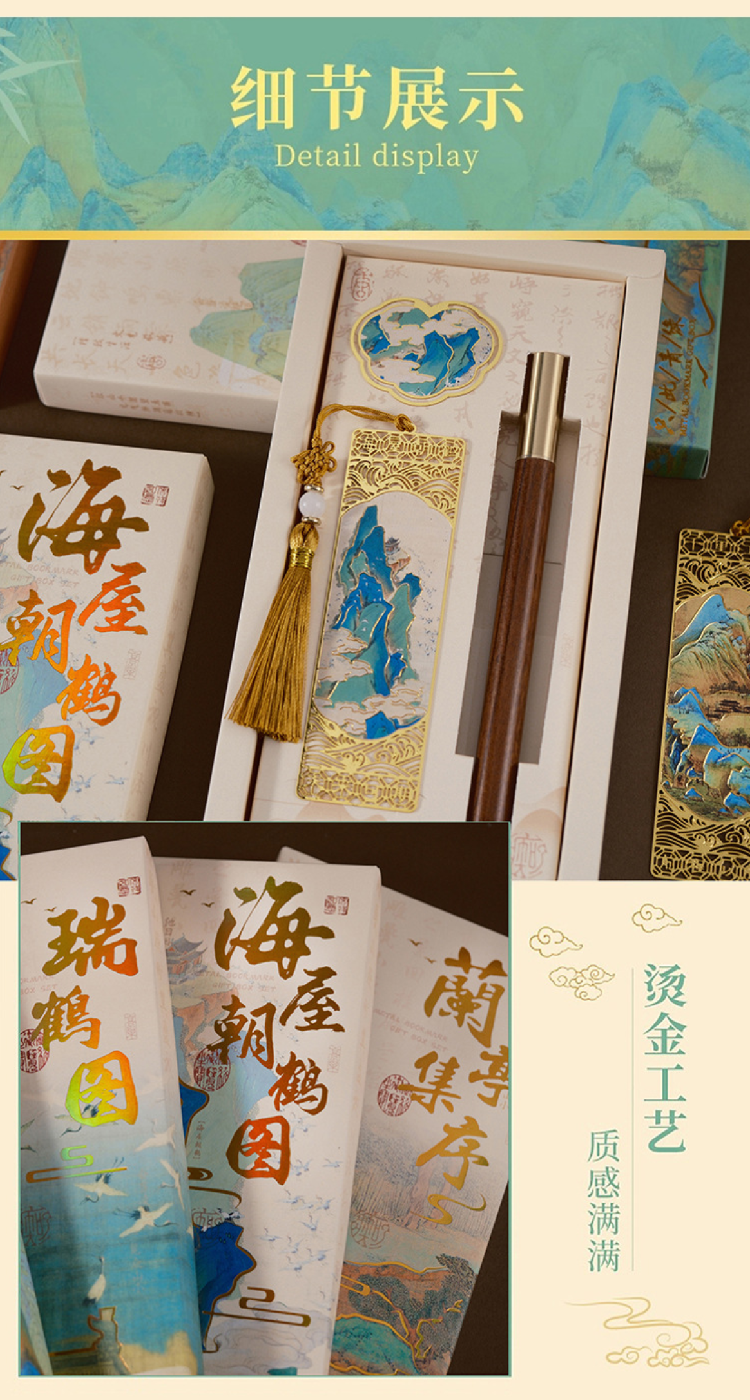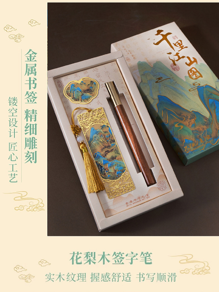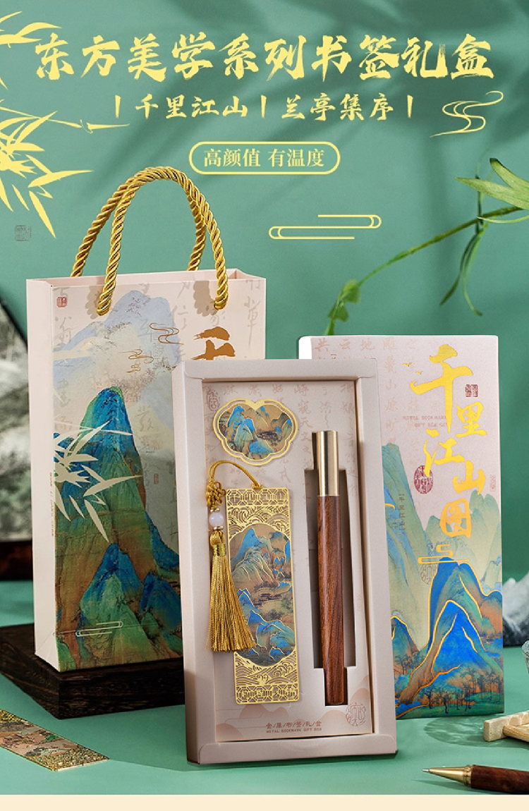 【新年礼物】2026新国风金属书签+檀木笔 千里江山文创小礼品礼盒套装伴手礼