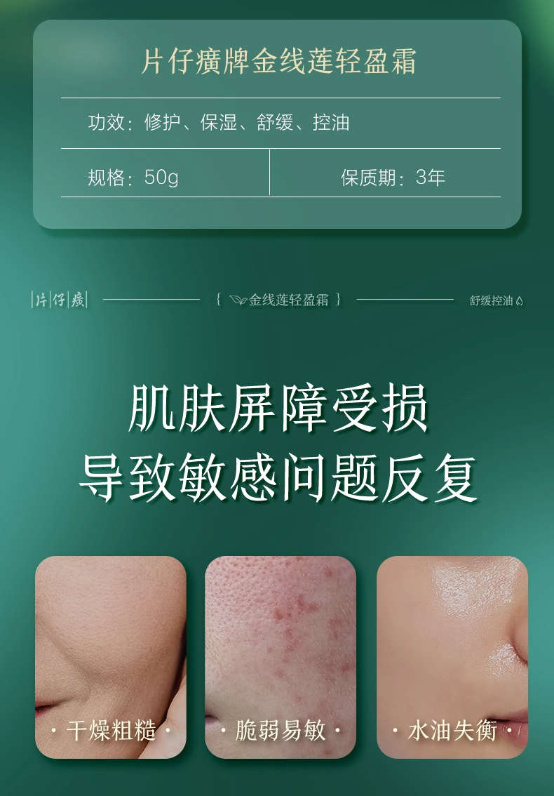 片仔癀牌金线莲轻盈霜 三重控油 男女保湿控油护肤 修护舒缓擦脸面霜*50g