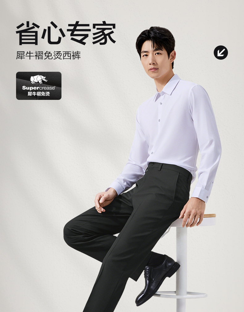 【犀牛褶/免烫】柒牌西裤男士2025秋季新款直筒中腰商务休闲西裤129H72780