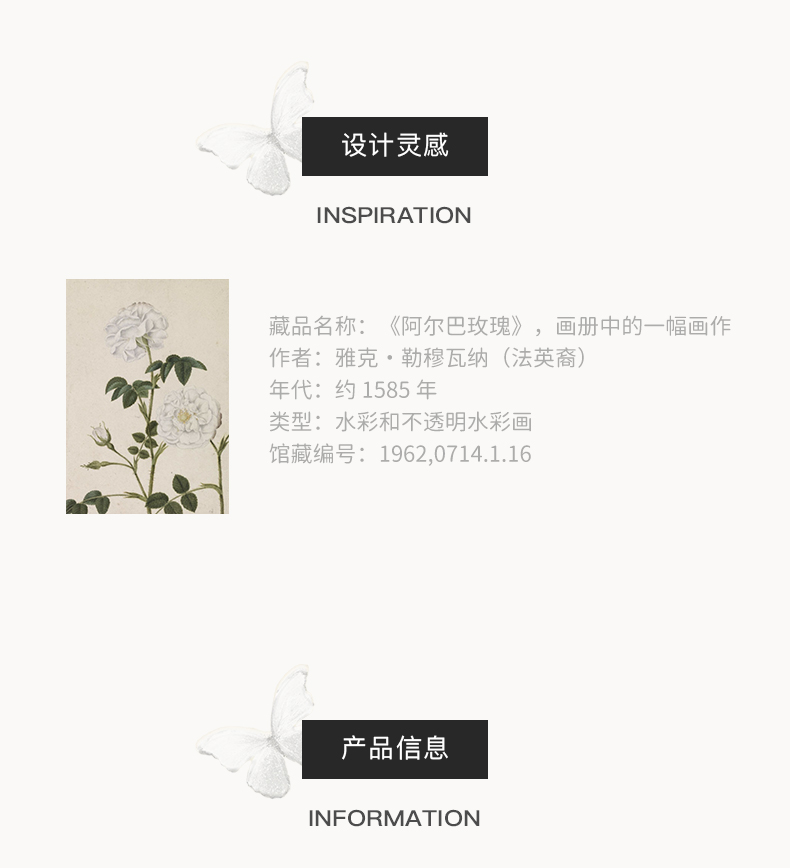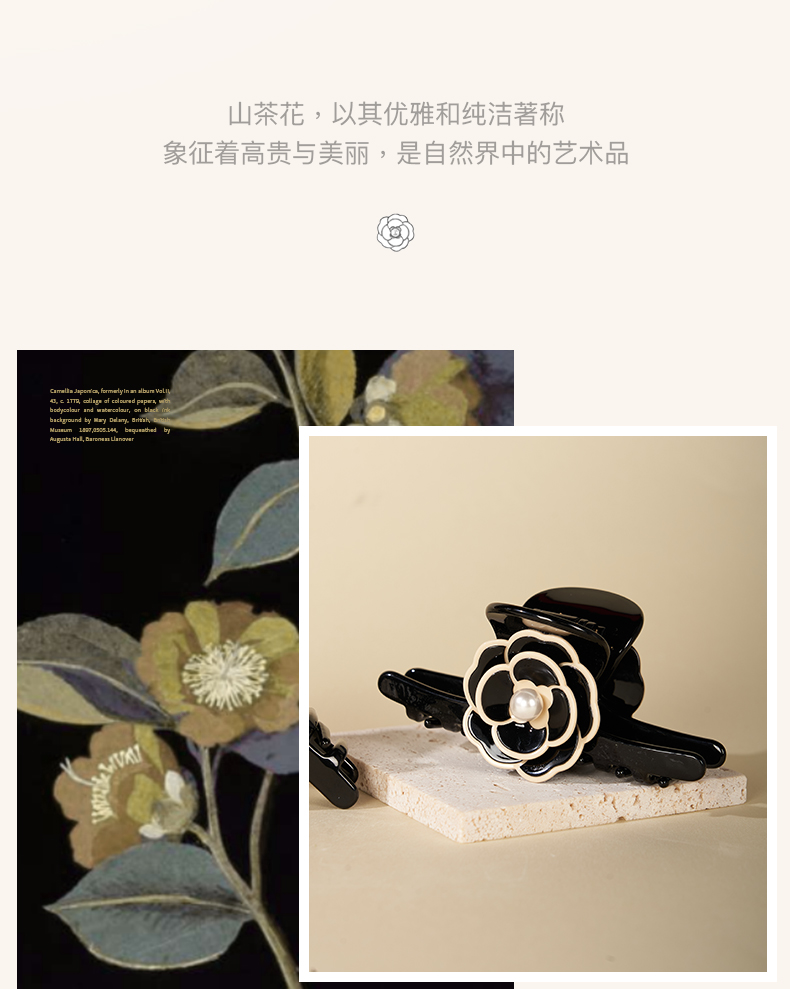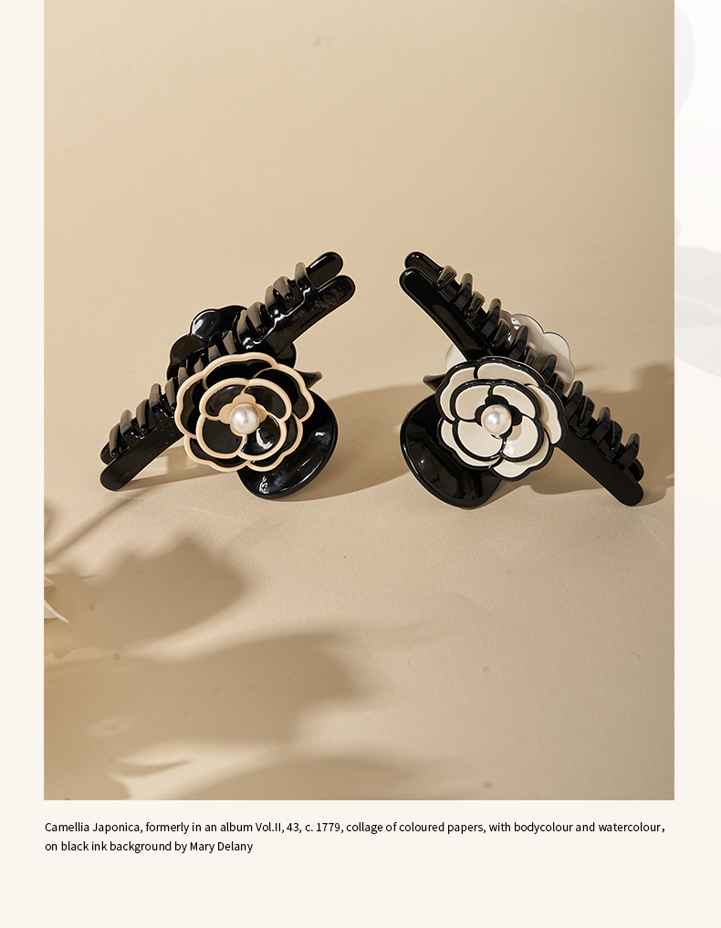 大英博物馆欧洲文化艺术系列黑色山茶花 白山茶花 抓夹