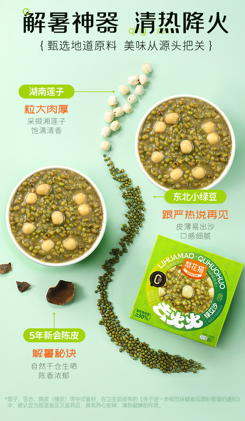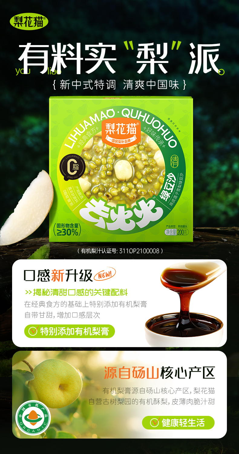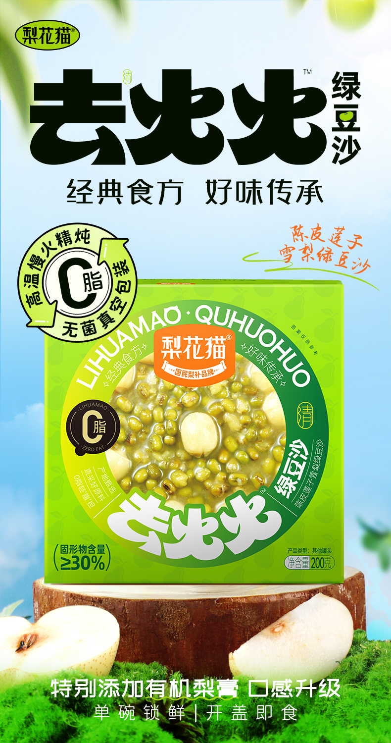 梨花猫 陈皮莲子雪梨绿豆沙200g*4碗/组 拍8盒送2盒 A-2547