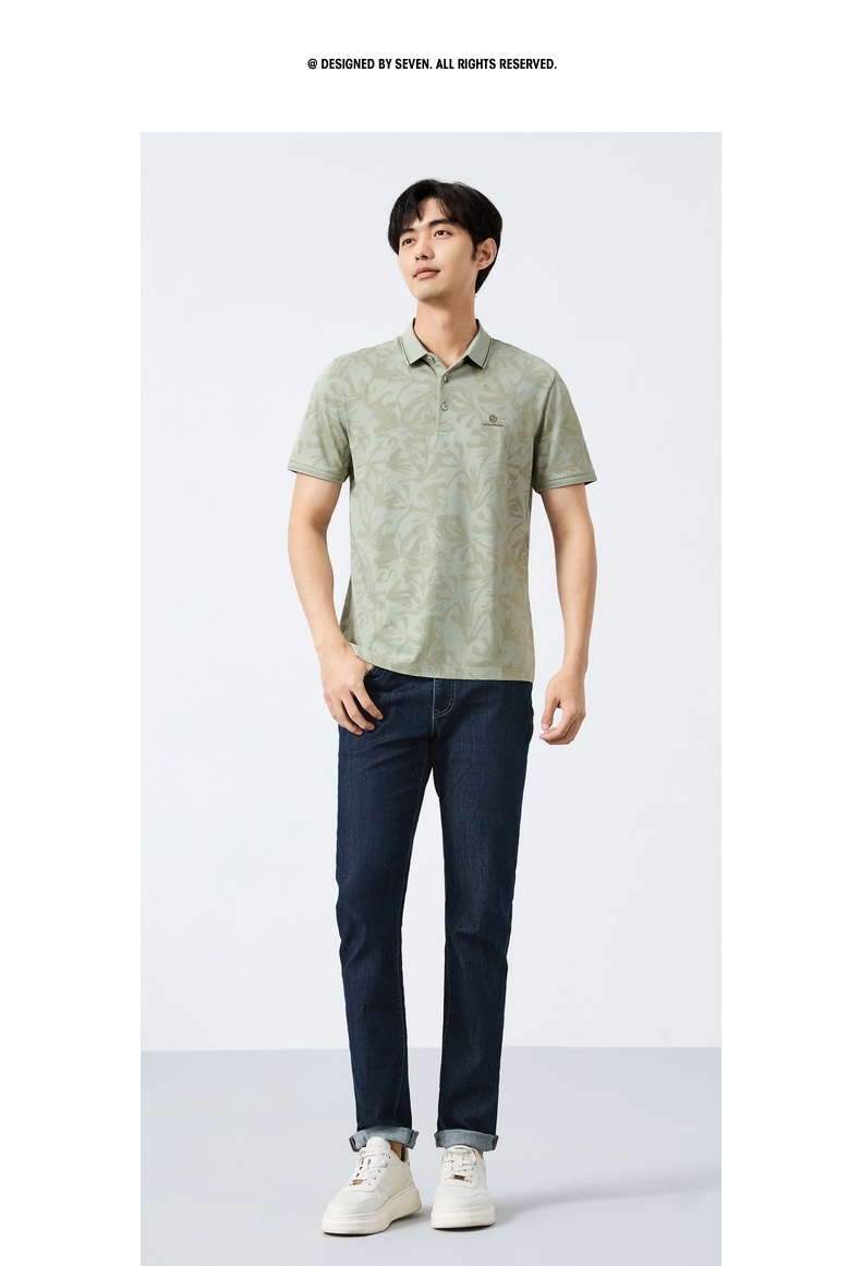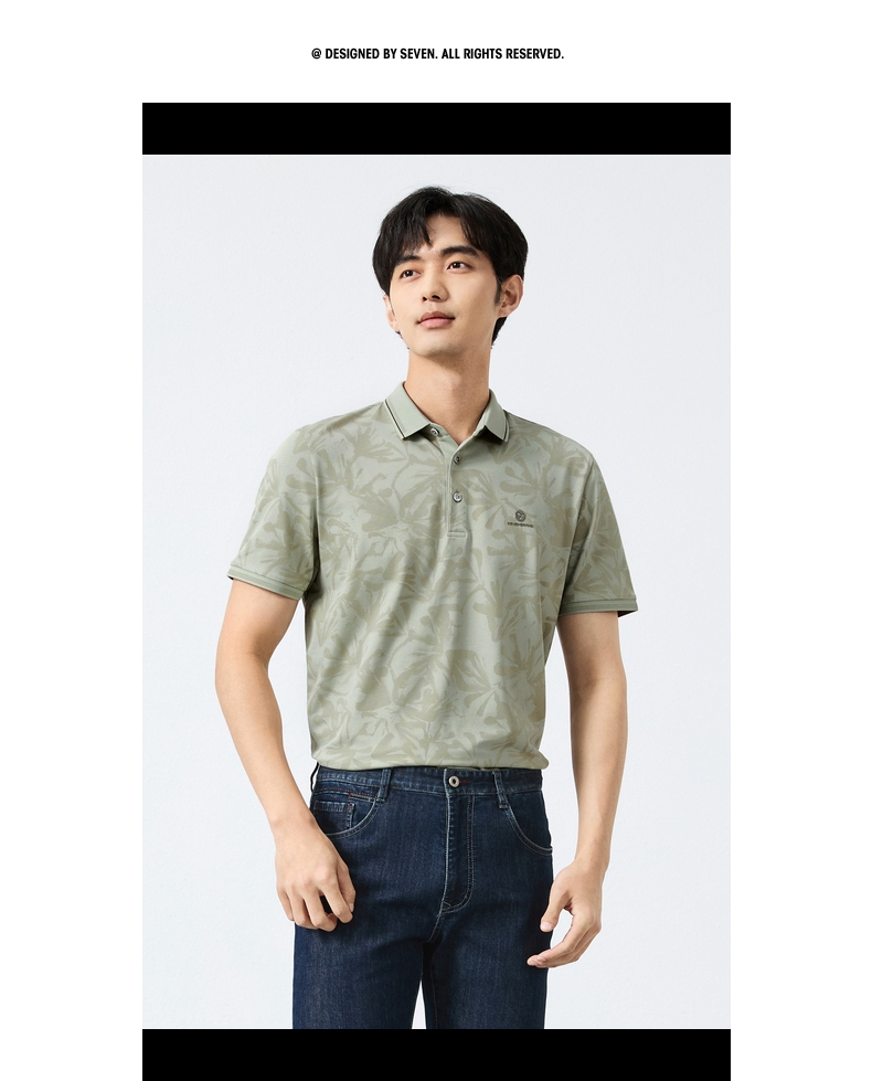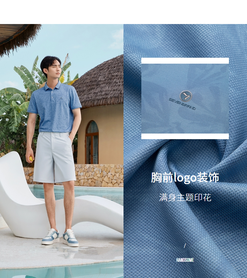 【度假系列】柒牌短袖polo衫男夏季新款休闲度假满身印花翻领上衣128T73050