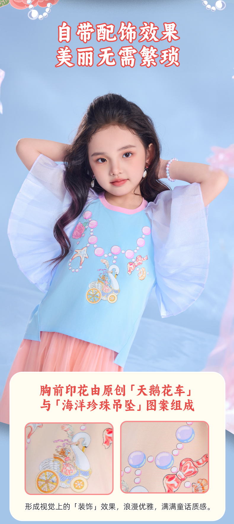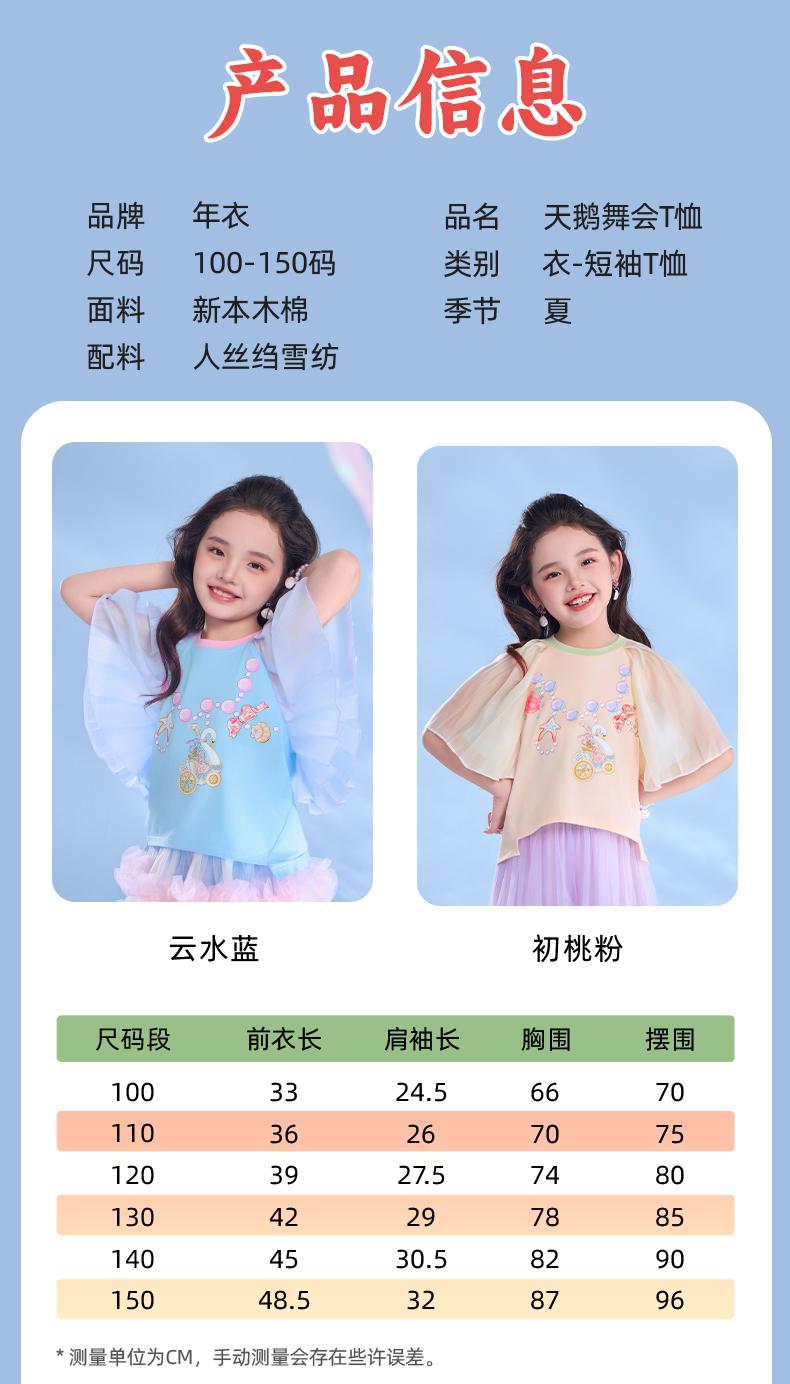 年衣2025夏季新款甜美中国风公主圆领套头打底衫上衣天鹅舞会T恤