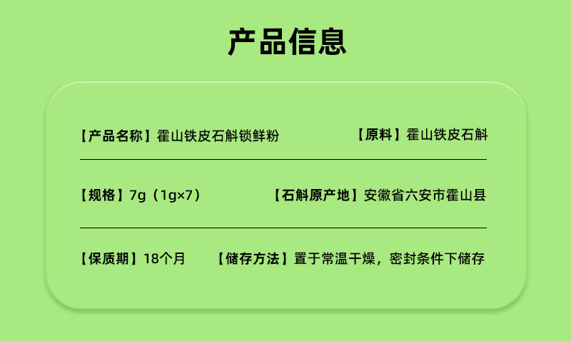 ² 鲜榨石斛口感清新醇厚【霍山铁皮石斛冻干粉】加水摇一摇就是鲜榨石斛胶质浓郁 1g*7个/盒 HM02-CRMM-FWPP