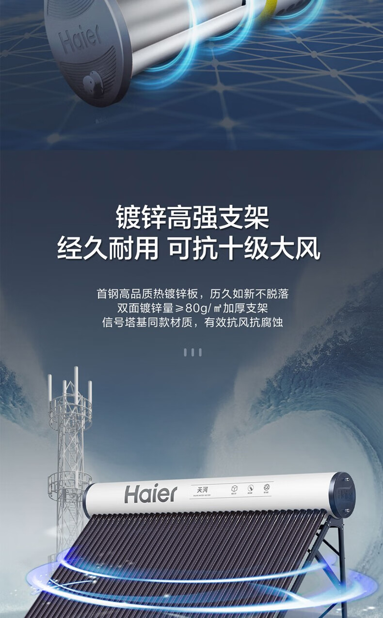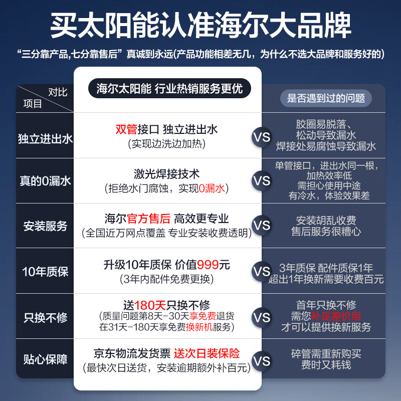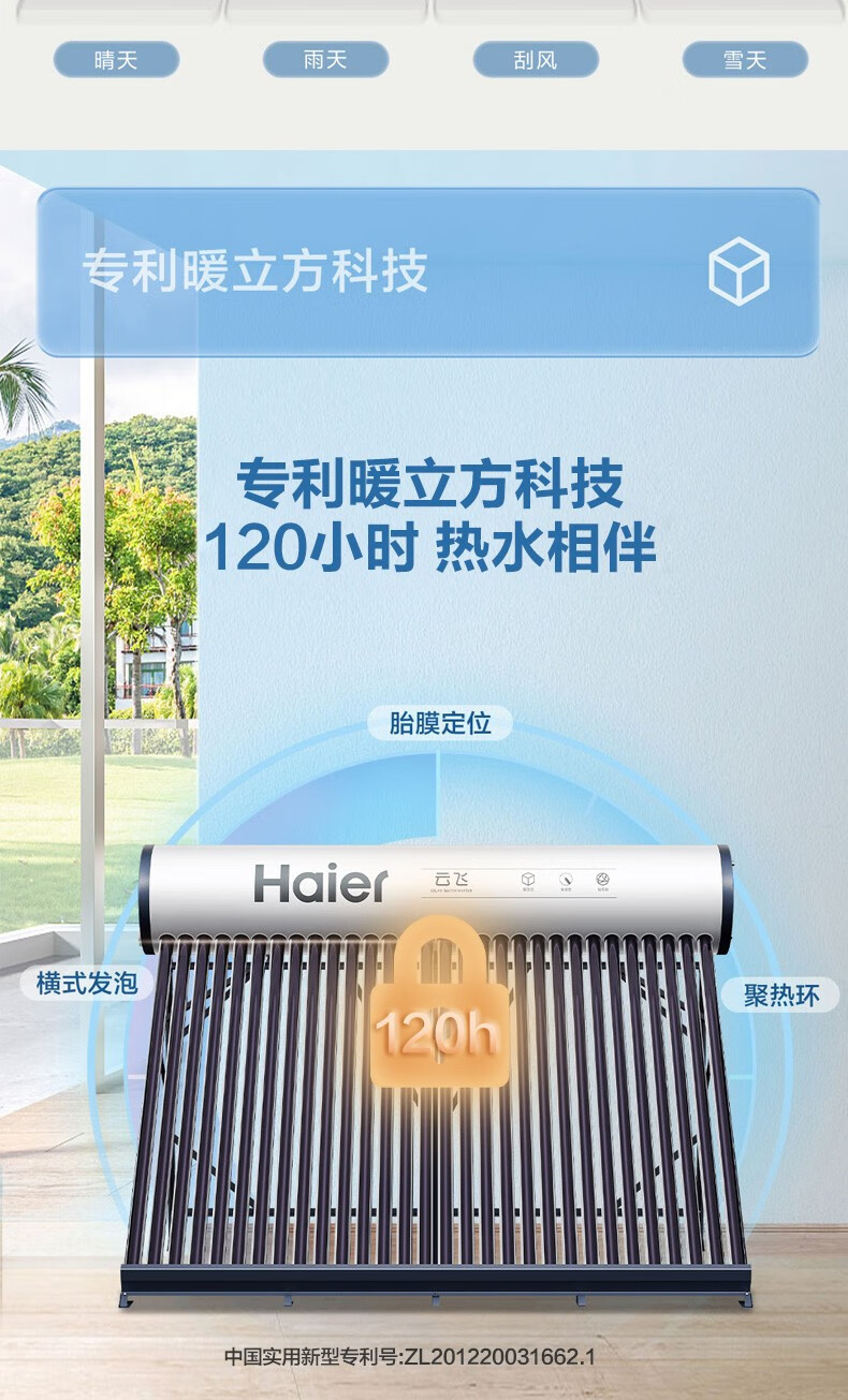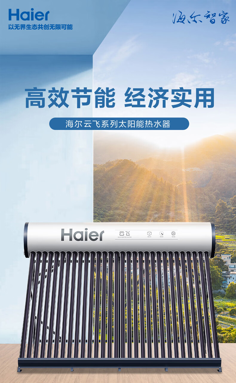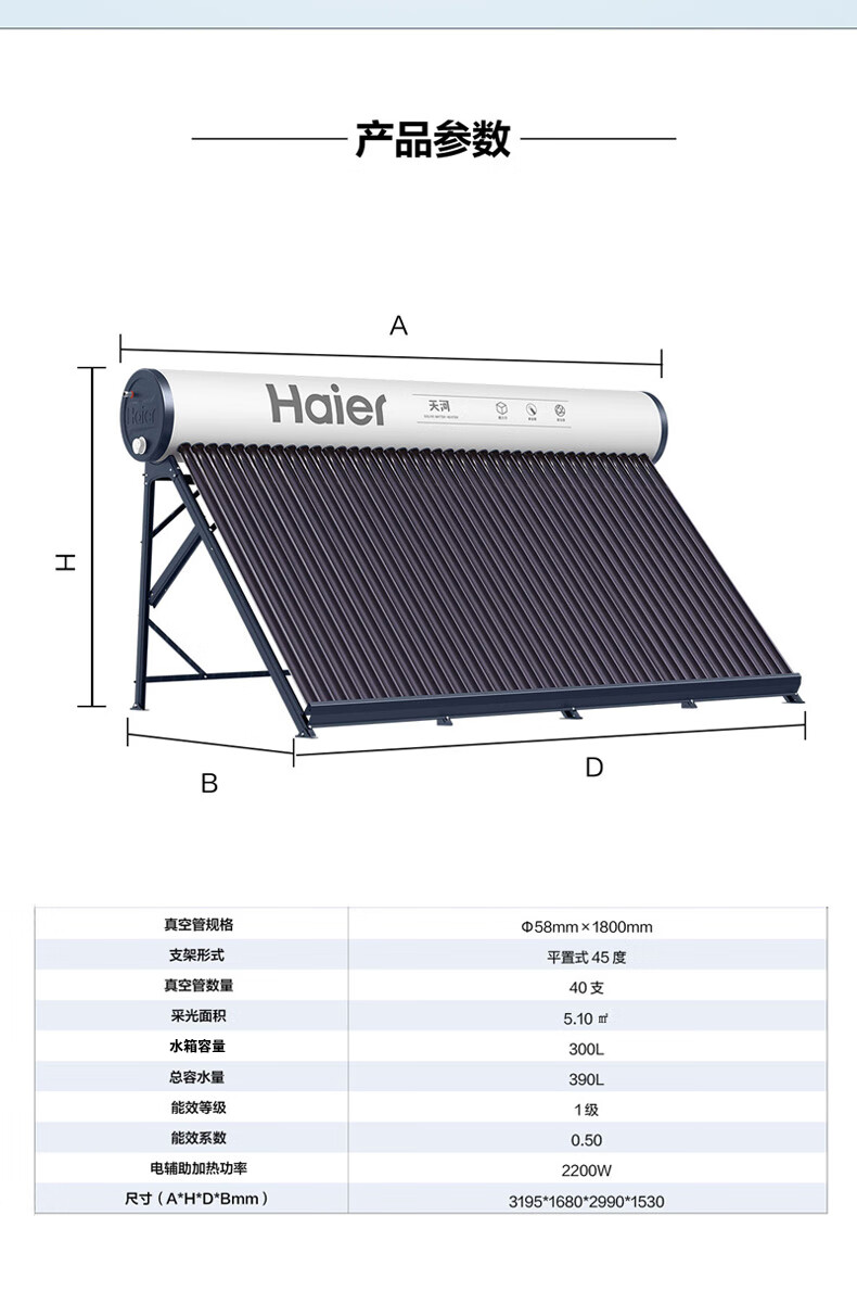 【下单前咨询库存】海尔(Haier)太阳能热水器家用一级能效 专利聚热环自动上水定时上水电辅加热 光电两用WIFI智控预约加热大容量 40管 300L 年度顶配新品K6