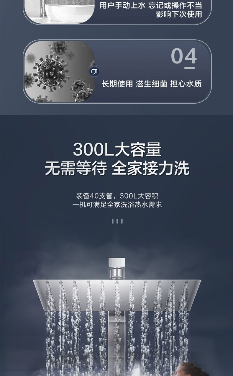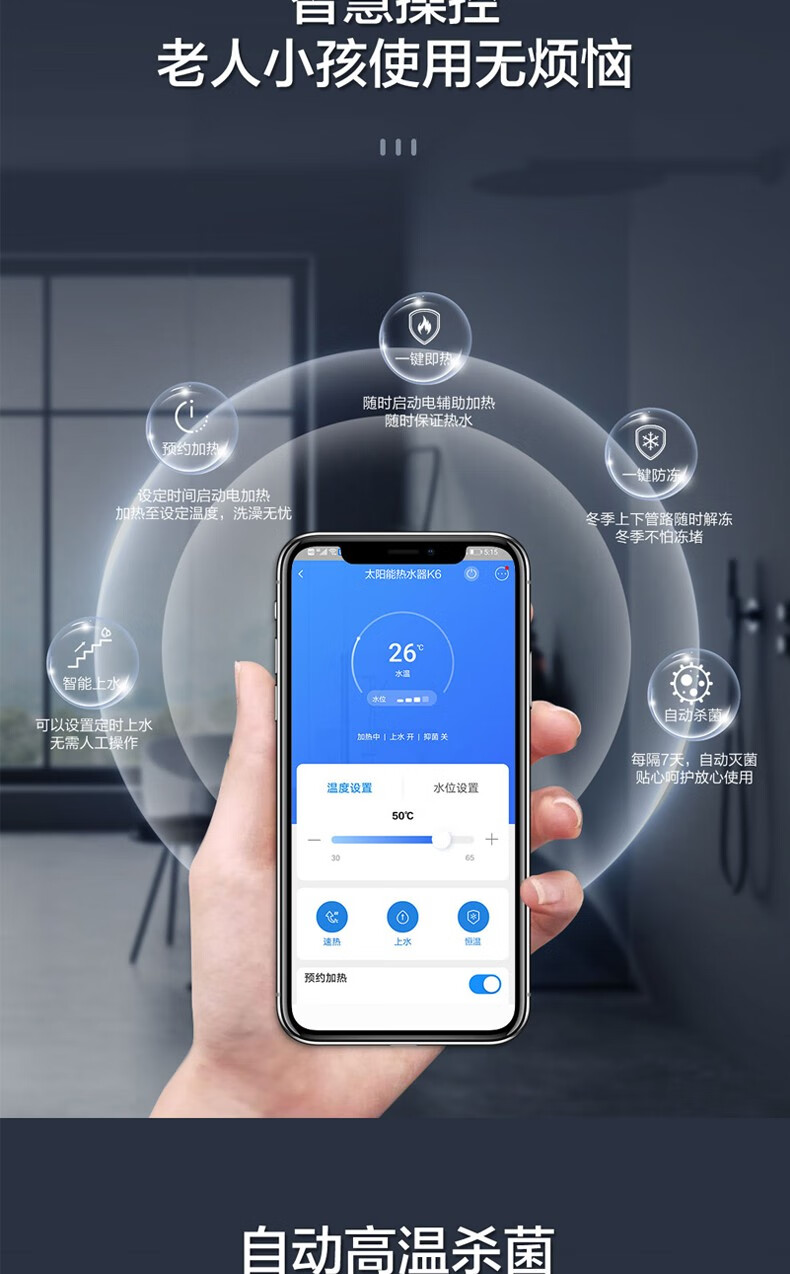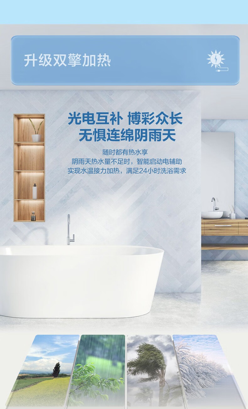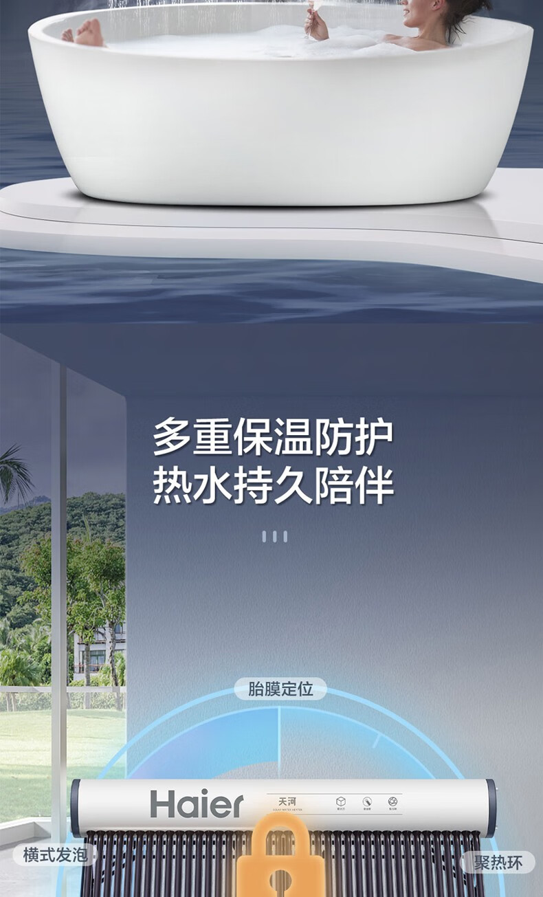 【下单前咨询库存】海尔(Haier)太阳能热水器家用一级能效 专利聚热环自动上水定时上水电辅加热 光电两用WIFI智控预约加热大容量 40管 300L 年度顶配新品K6