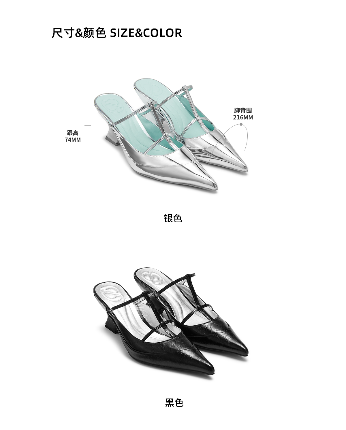 lost in echo2024春夏新款尖头拼接细带异形跟猫跟凉拖高跟鞋时尚