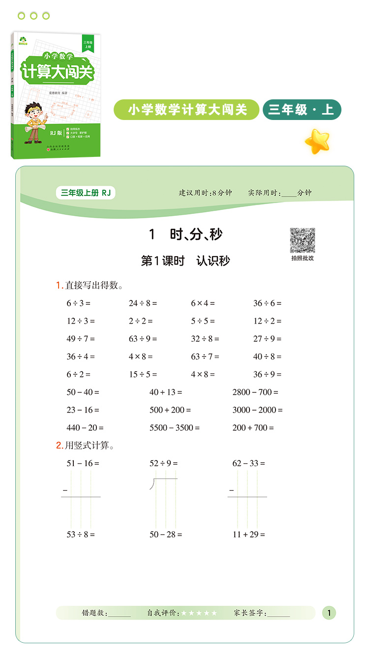 2025年同步教材小学数学计算大闯关一二三年级下册竖式加减乘除混合运算有余数的除法上册口算天天练万以内数认识应用题