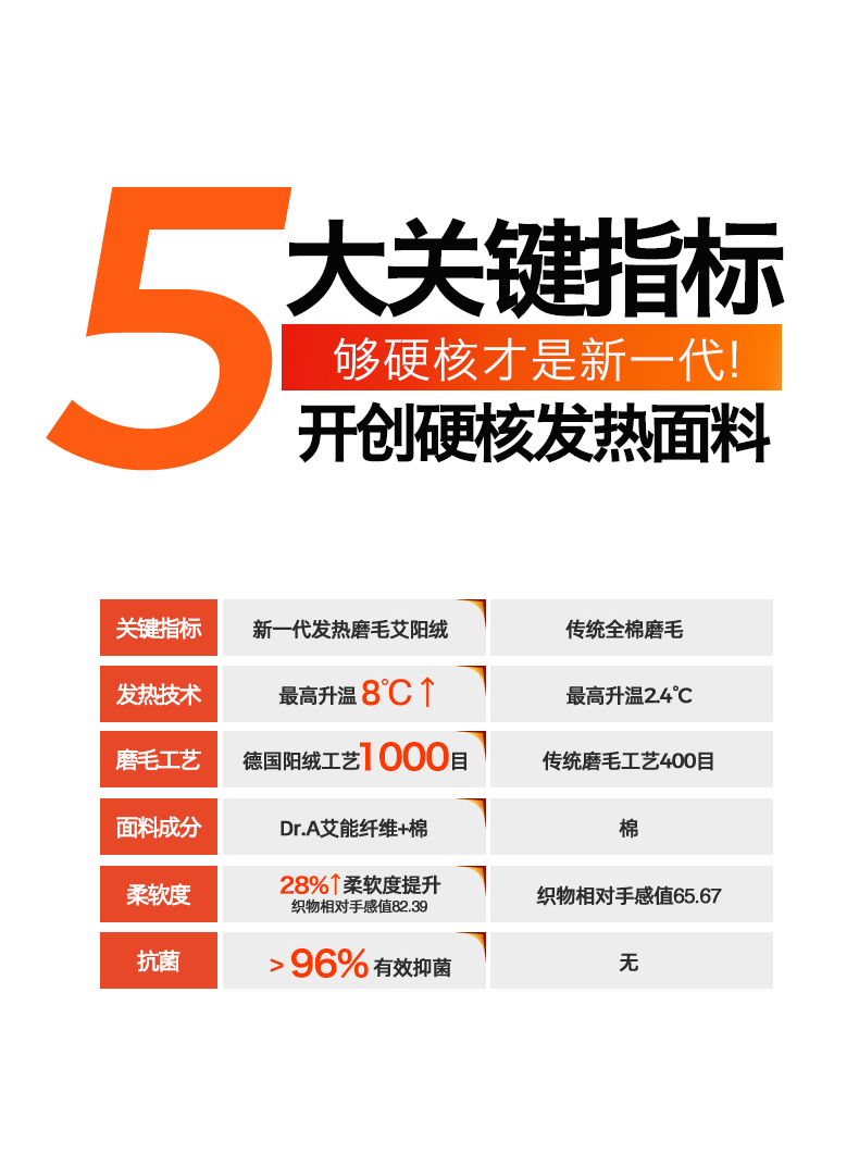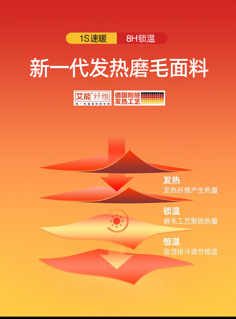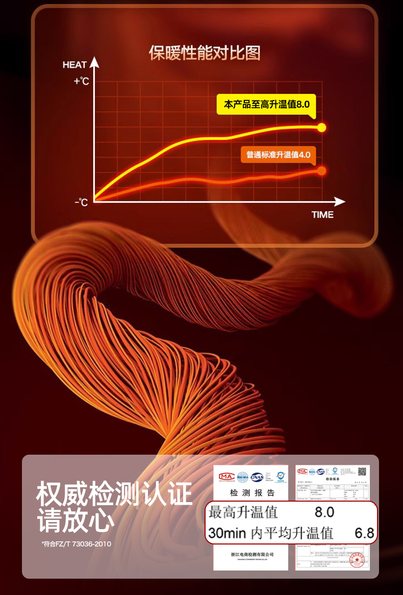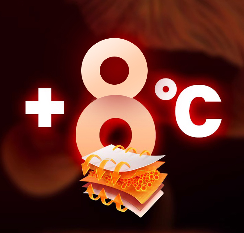 升级莱赛尔+棉艾纱线精密织造,艾发热X绒面发热,发热性能最大温度升高值8.0