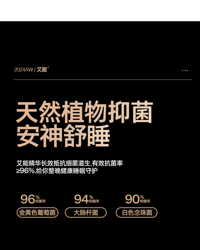 艾能®纤维长效抵抗细菌滋生,有效抗菌率≥94%,远红外发射率达0.93提高人体热能,促进体表微循环