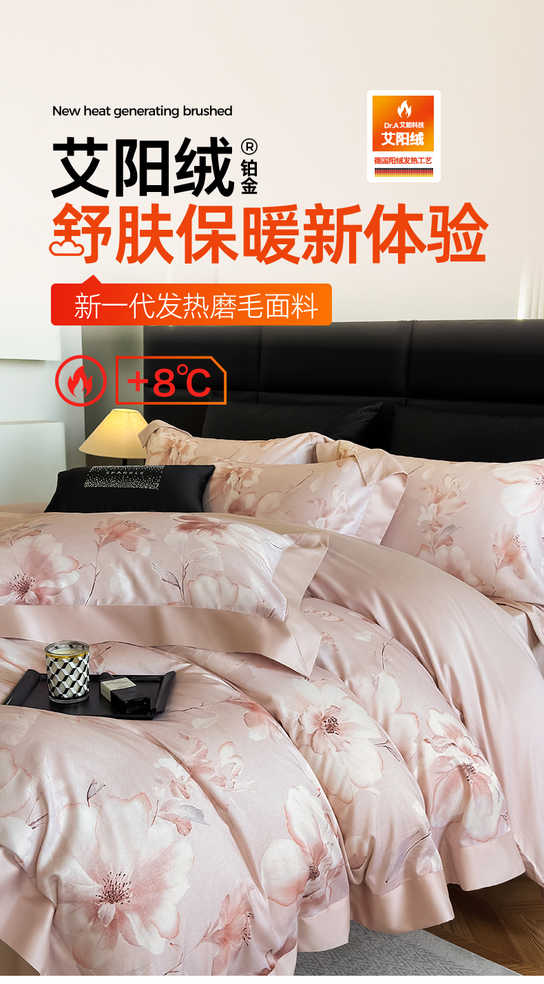 【线下门店轻奢高品质款】「超柔加厚磨毛 铂金艾阳绒」升温➕8°抑菌艾能纤维磨毛四件套