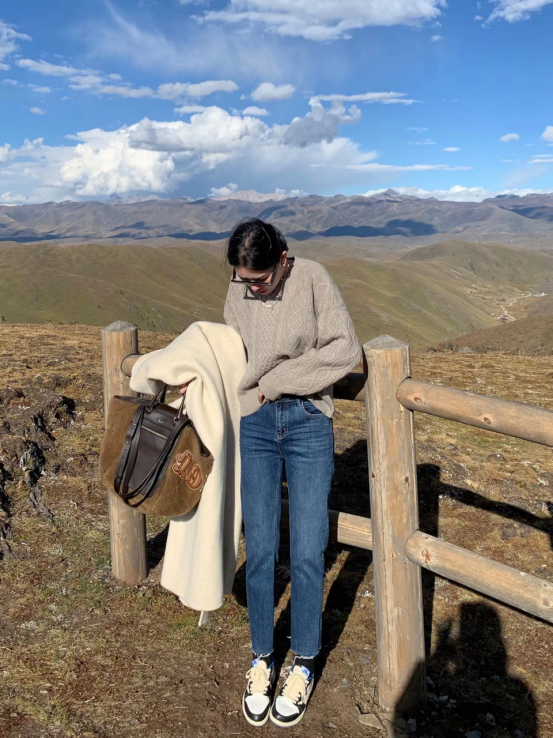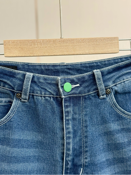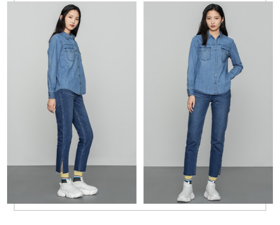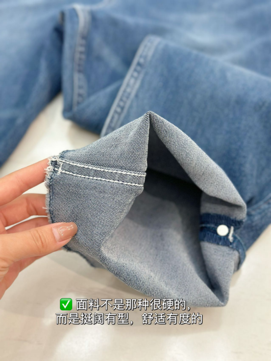 面料不是那种很硬的,而是挺阔有型,舒适有度的 水洗牛仔蓝的颜色也是刚刚好 颜色过度自然,层次鲜明 立体肌理和色调相互融合 不愧是今年最火爆的牛仔裤