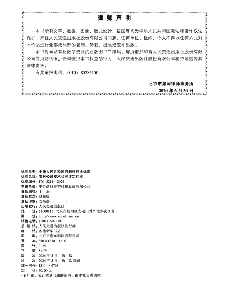 书名:农村公路技术状况评定标准(JTG 5211—2024)