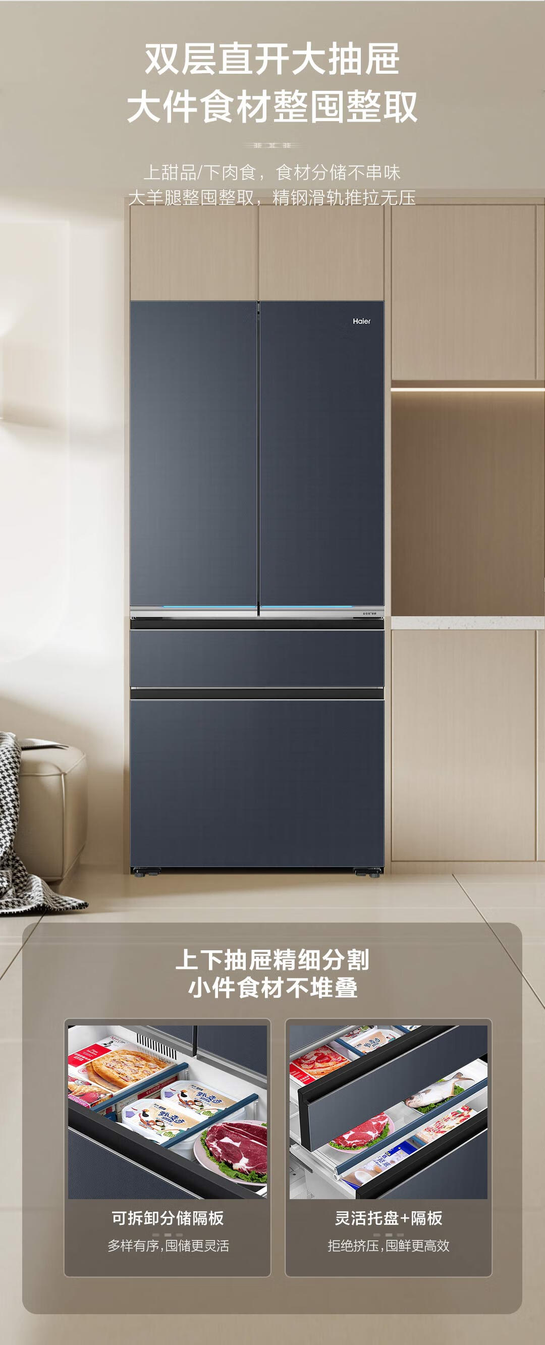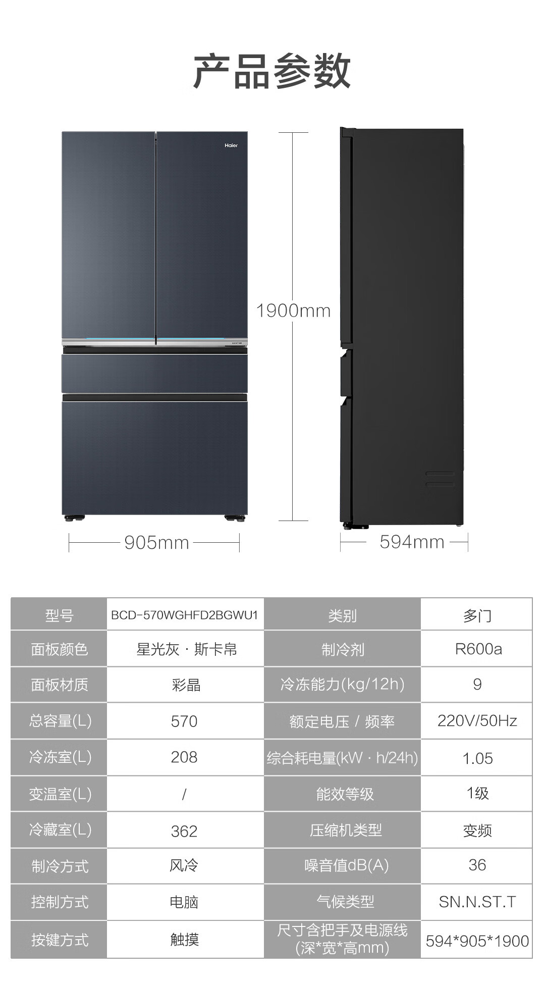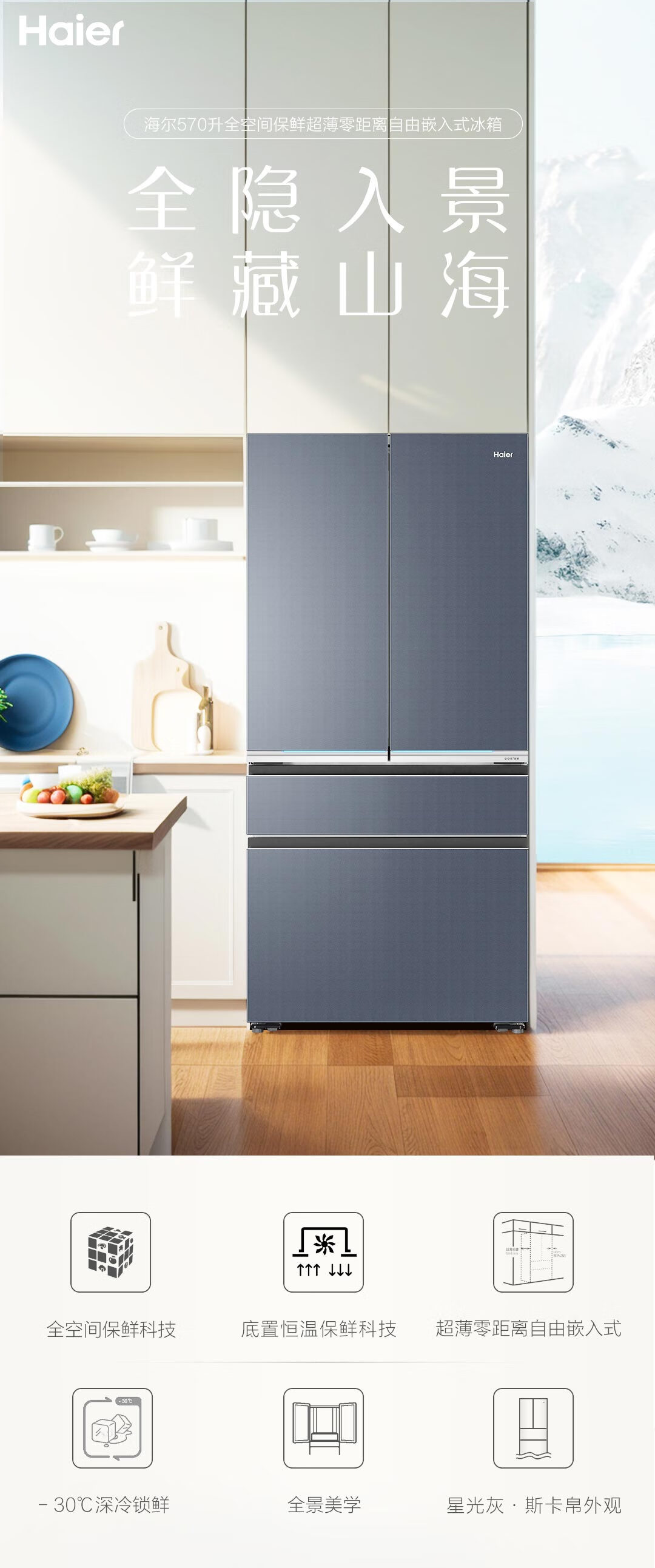 博悦系列旗舰款-海尔570升法式四门多门冰箱 全空间保鲜超薄零距离自由嵌入式干湿分储底置恒温保鲜博悦系列旗舰款冰箱 570L星光灰+超薄零嵌式+全空间保鲜+EPP超净