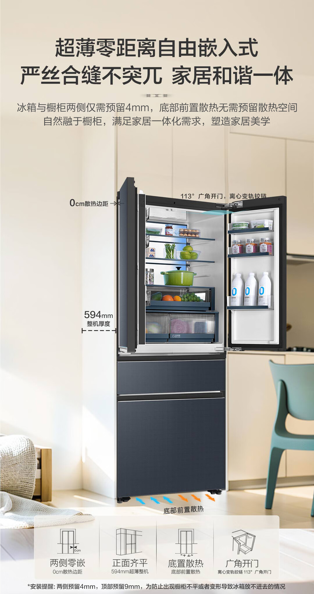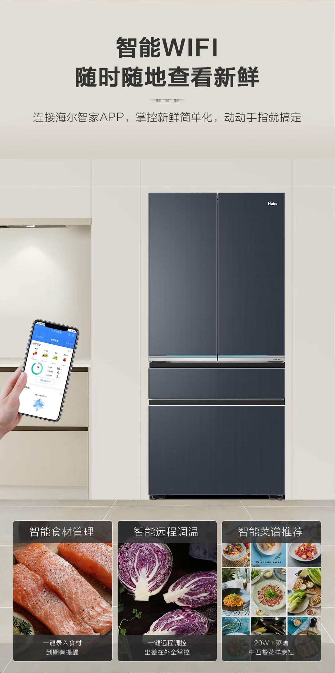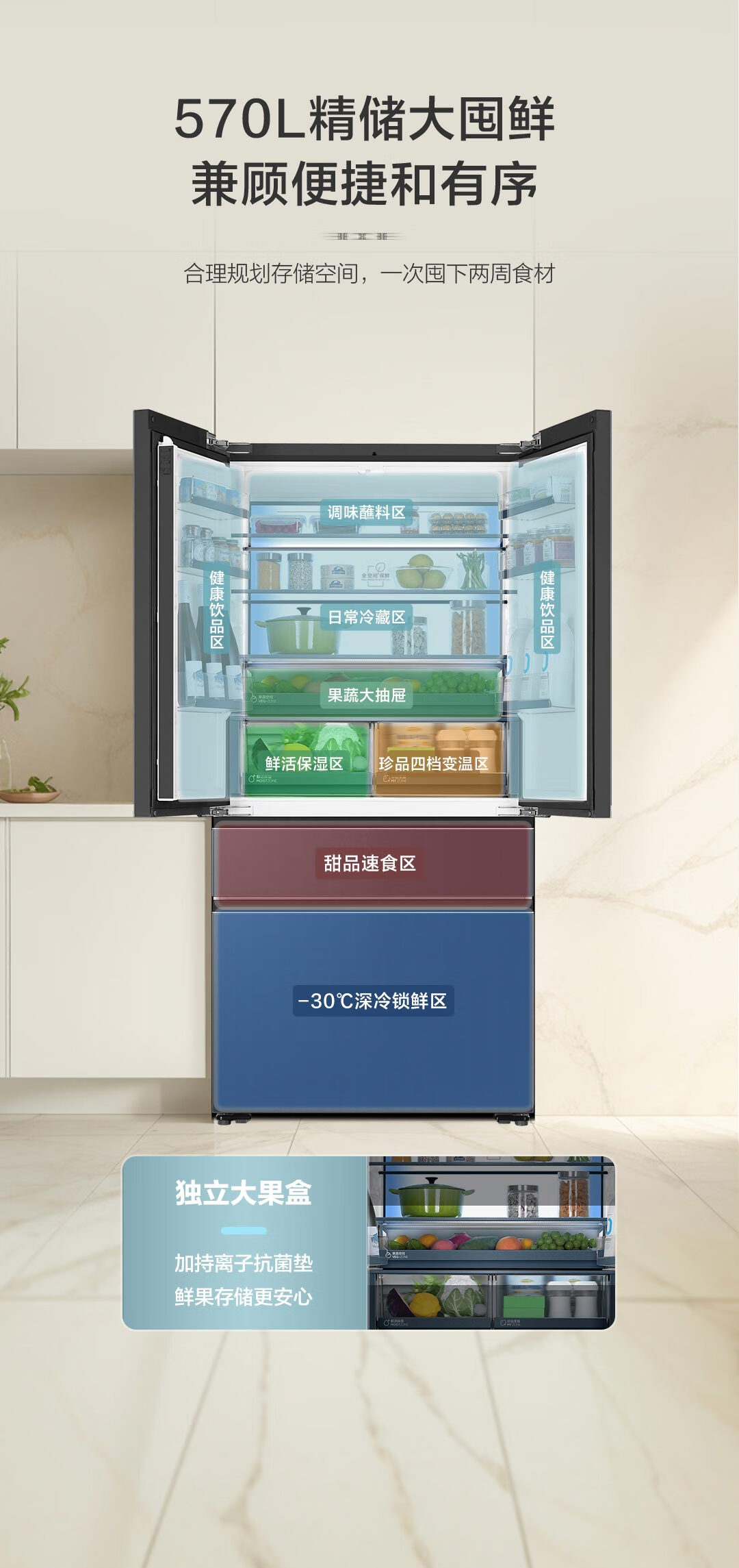 博悦系列旗舰款-海尔570升法式四门多门冰箱 全空间保鲜超薄零距离自由嵌入式干湿分储底置恒温保鲜博悦系列旗舰款冰箱 570L星光灰+超薄零嵌式+全空间保鲜+EPP超净